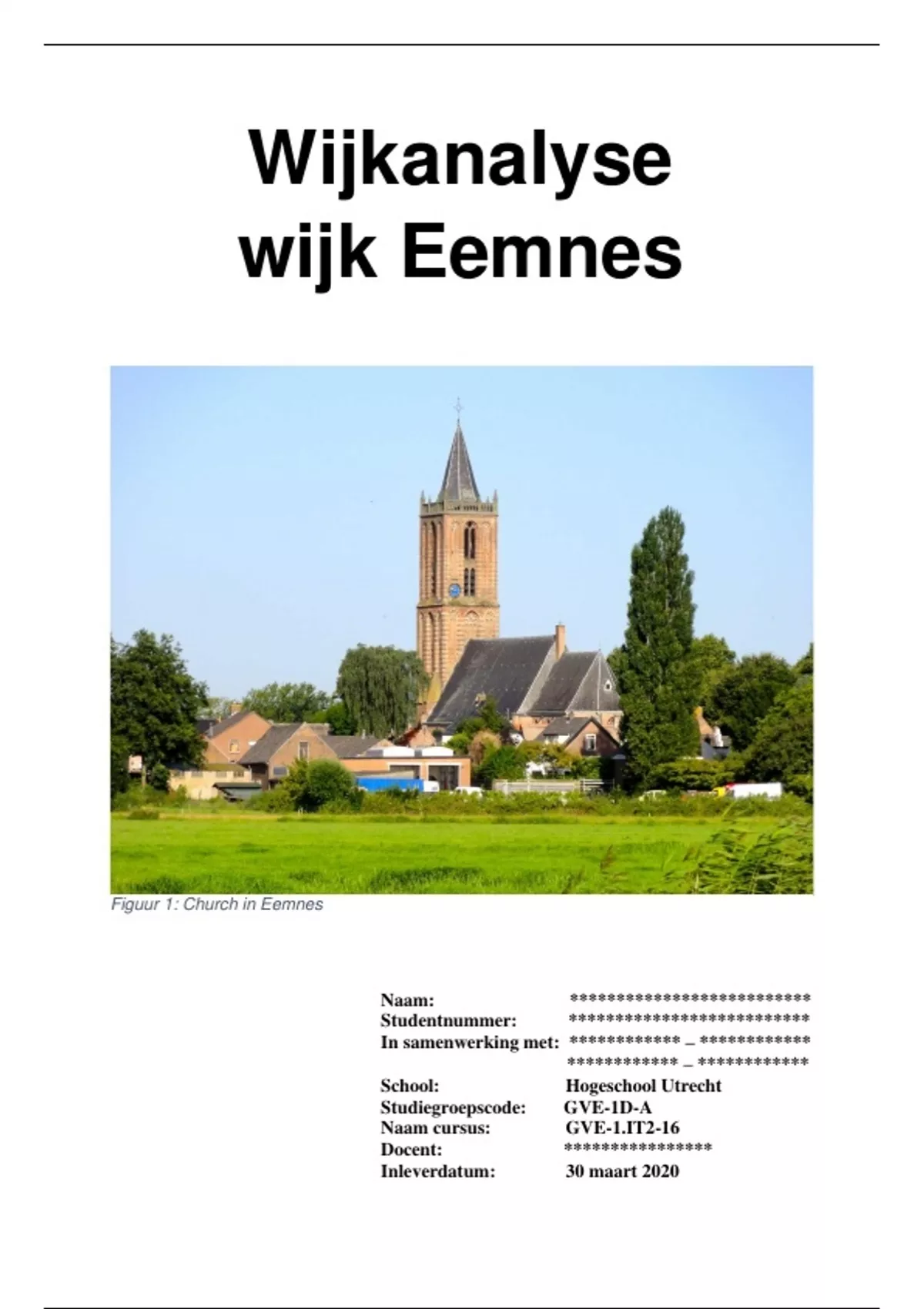 Deze wijkanalyse is geschreven in opdracht van Hogeschool Utrecht. Deze gedeeltelijke gezamenlijke opdracht (tot stap 4) en individuele opdracht (stap 5) gaat over Eemnes. Bij vragen kan je altijd een berichtje sturen