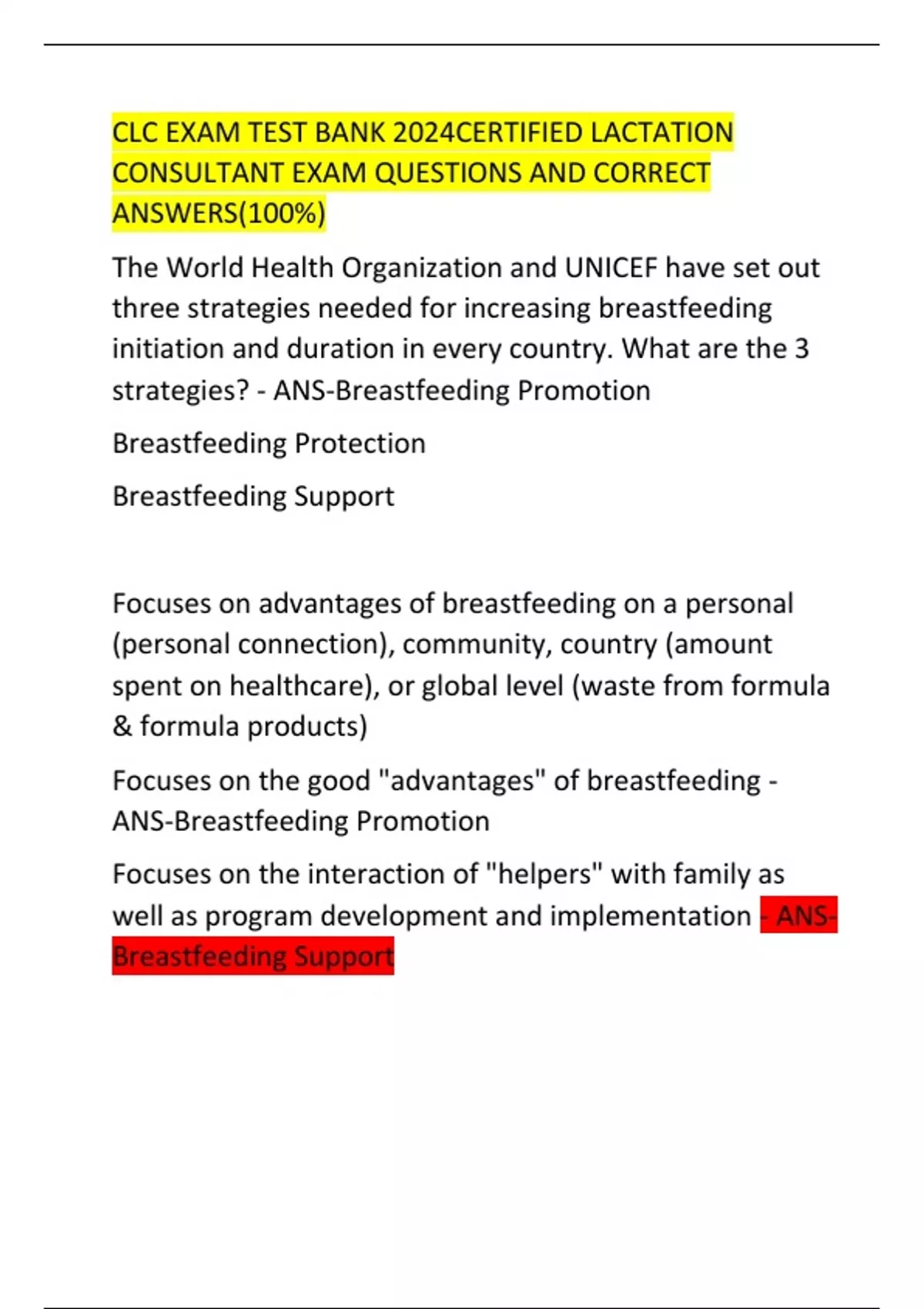 CLC EXAM TEST BANK 2024CERTIFIED LACTATION CONSULTANT EXAM QUESTIONS AND CORRECT ANSWERS(100%)