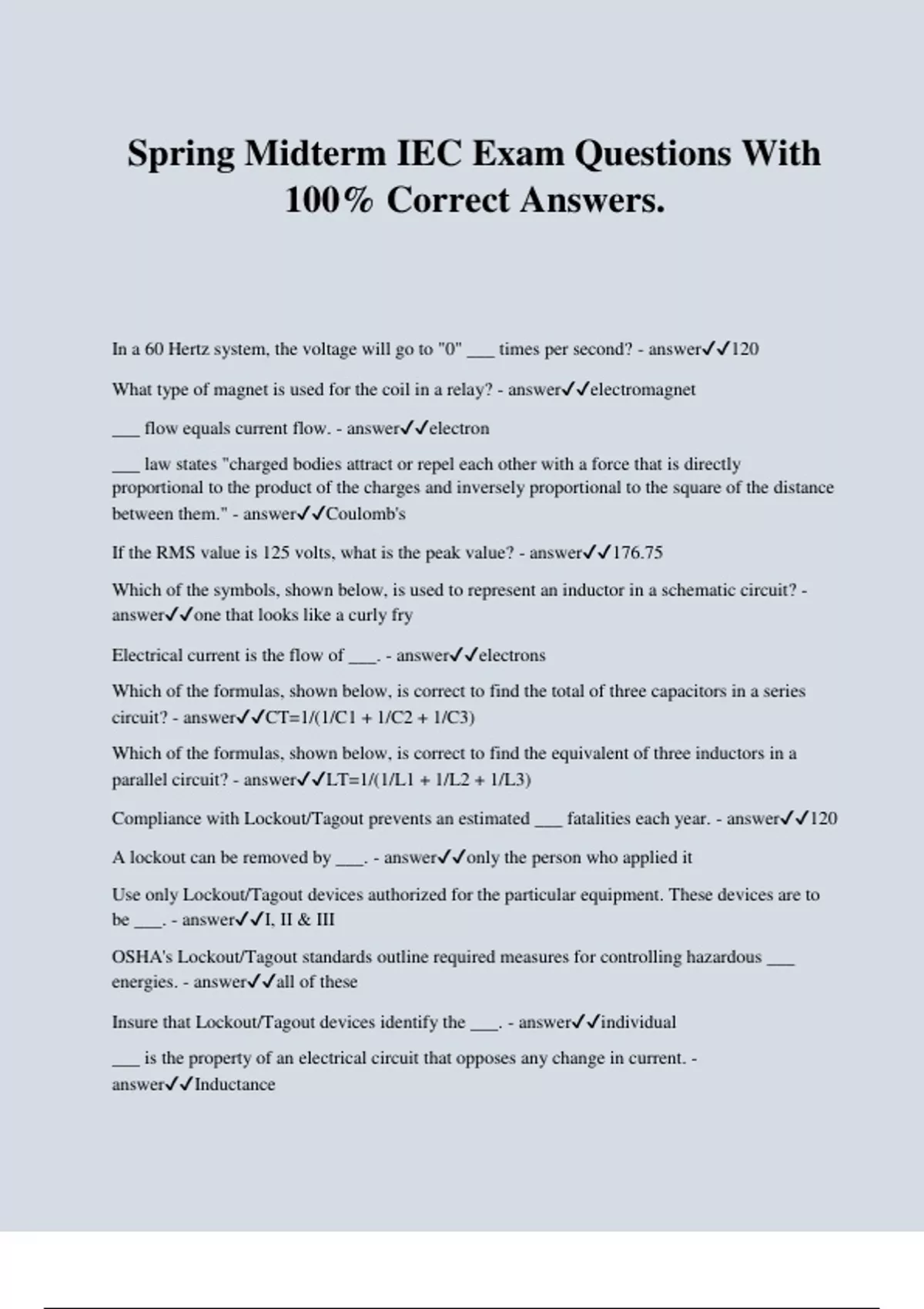 Spring Midterm IEC Exam Questions With 100% Correct Answers.
