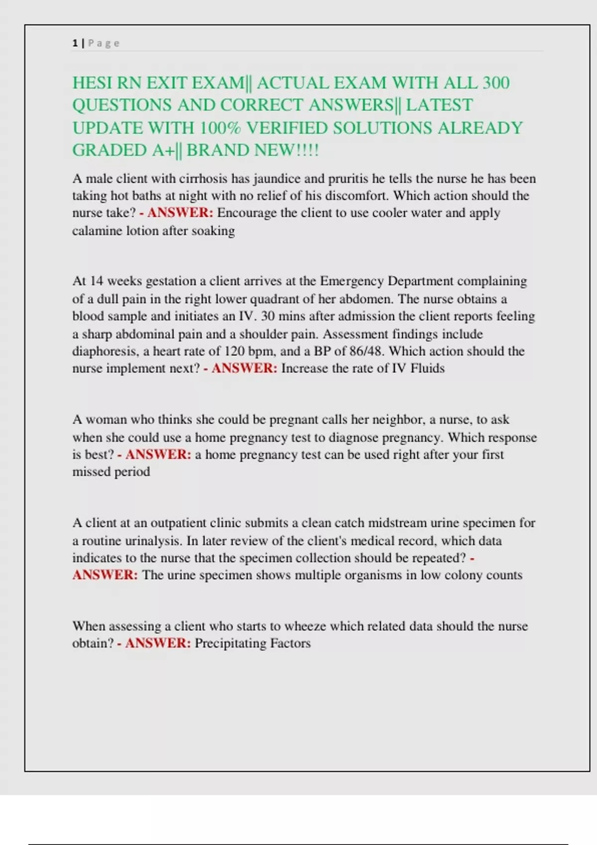 HESI RN EXIT EXAM|| ACTUAL EXAM WITH ALL 300 QUESTIONS AND CORRECT ANSWERS|| LATEST UPDATE WITH 100% VERIFIED SOLUTIONS ALREADY GRADED A+|| BRAND NEW!!!!