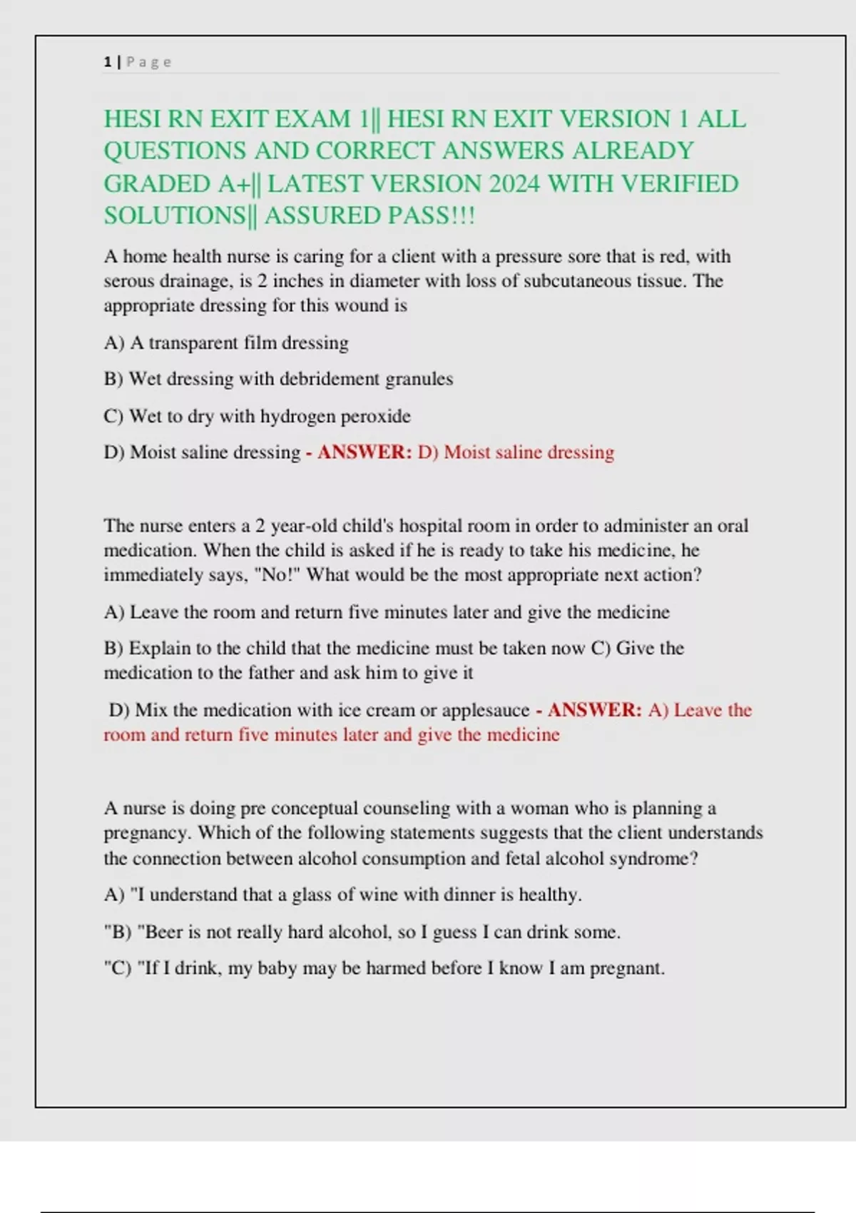 HESI RN EXIT EXAM 1|| HESI RN EXIT VERSION 1 ALL QUESTIONS AND CORRECT ANSWERS ALREADY GRADED A+|| LATEST VERSION 2024 WITH VERIFIED SOLUTIONS|| ASSURED PASS!!!