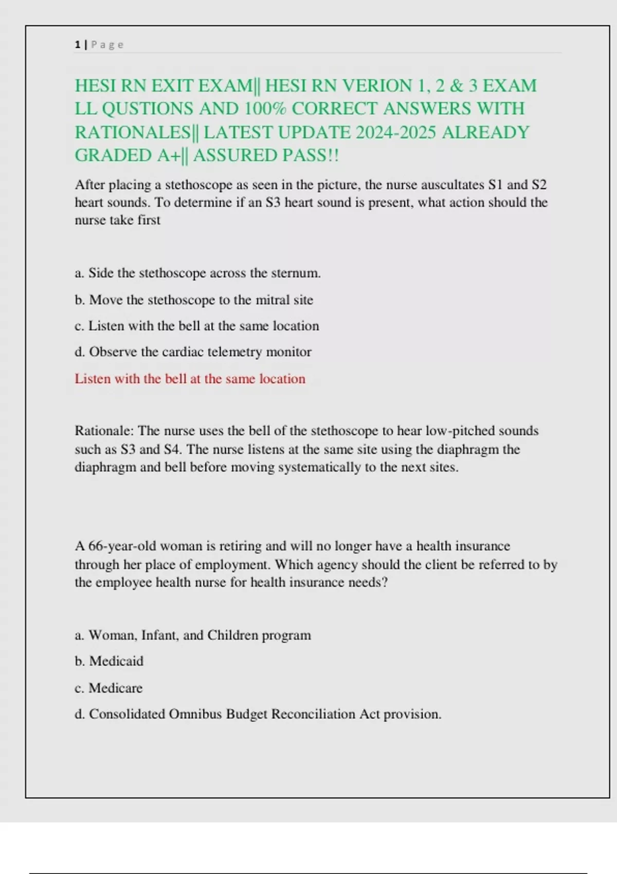 HESI RN EXIT EXAM|| HESI RN VERION 1, 2 & 3 EXAM LL QUSTIONS AND 100% CORRECT ANSWERS WITH RATIONALES|| LATEST UPDATE ALREADY GRADED A+|| ASSURED PASS!!