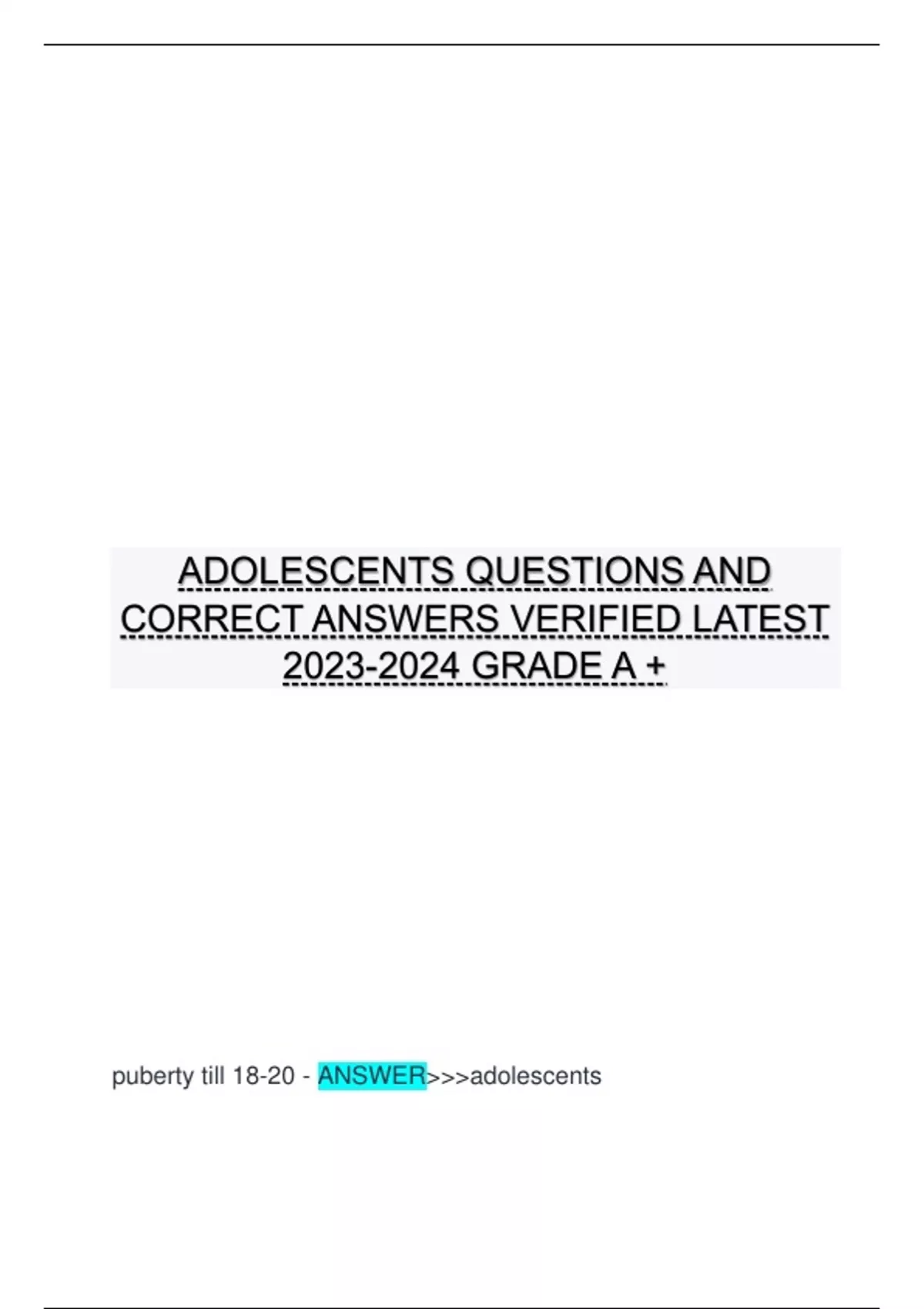 ADOLESCENTS QUESTIONS AND CORRECT ANSWERS VERIFIED LATEST GRADE A + ADOLESCENTS QUESTIONS AND CORRECT ANSWERS VERIFIED LATEST GRADE A + ADOLESCENTS QUESTIONS AND CORRECT ANSWERS VERIFIED LATEST GRADE A +