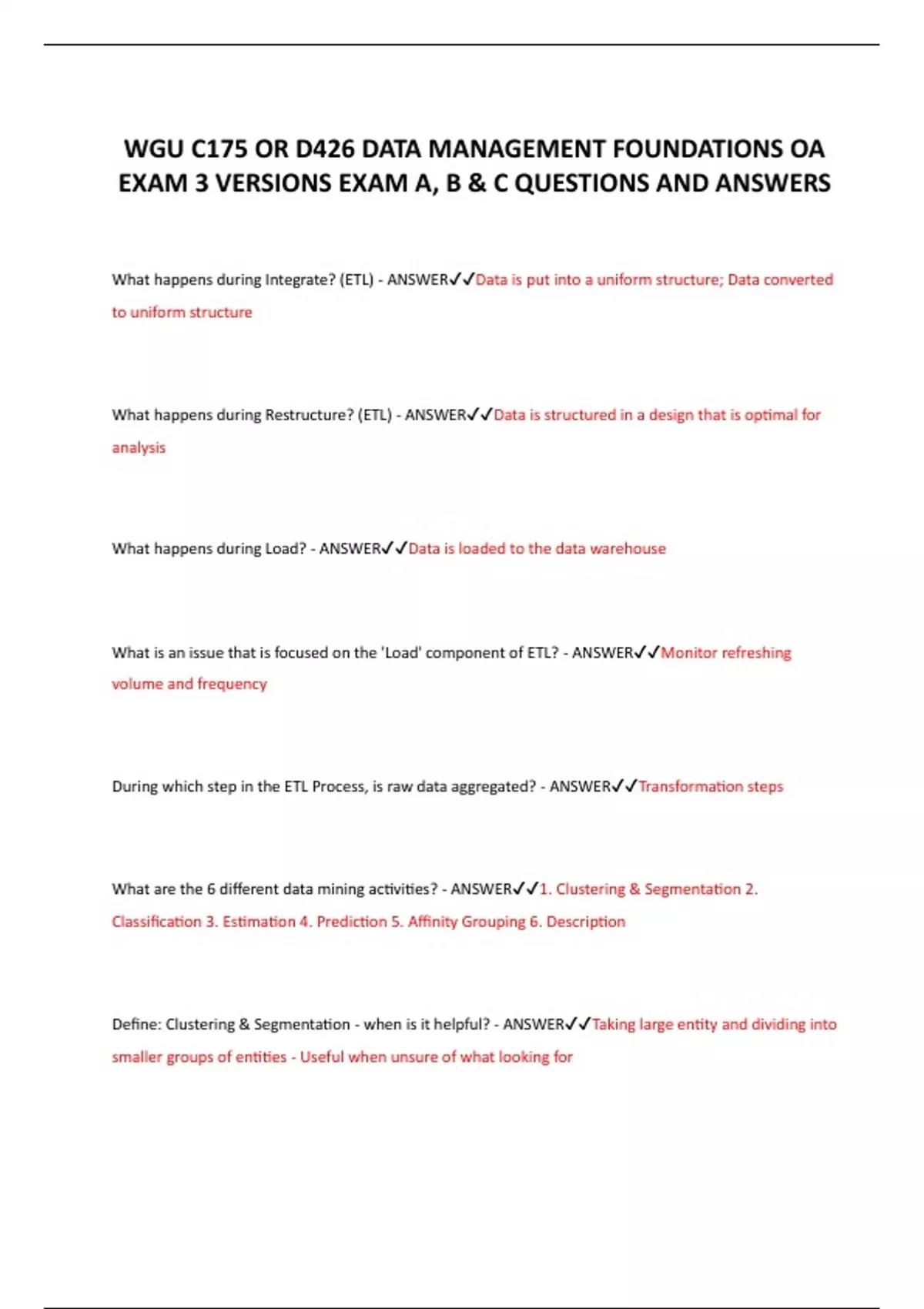 - WGU C175 OR D426 DATA MANAGEMENT FOUNDATIONS OA