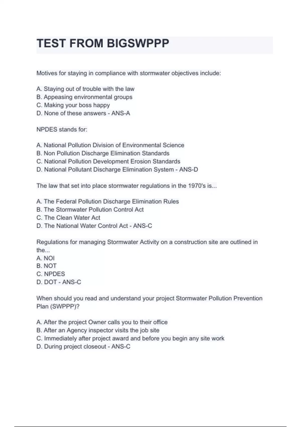 before the Stormwater Prevention Plan is developed. - ANS-False