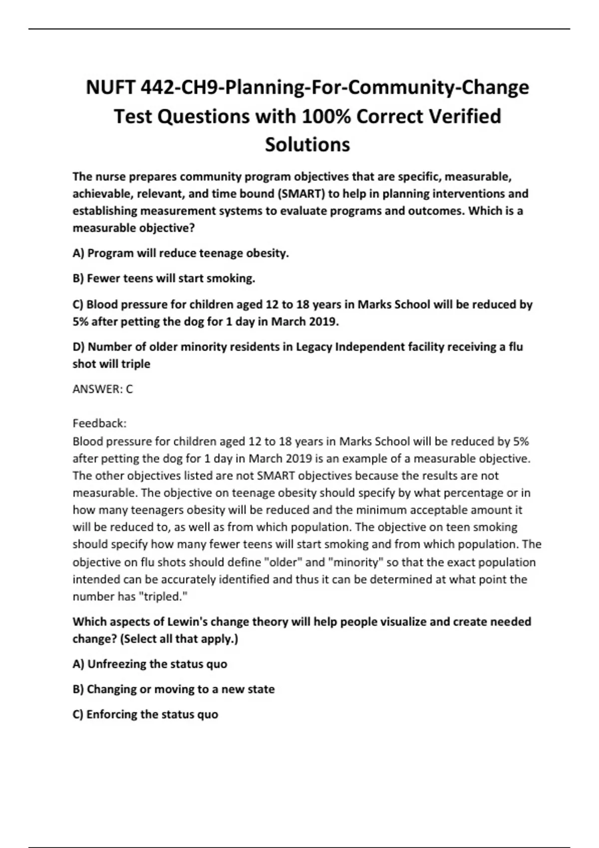 NUFT 442-CH9-Planning-For-Community-Change Test Questions with 100% Correct Verified Solutions