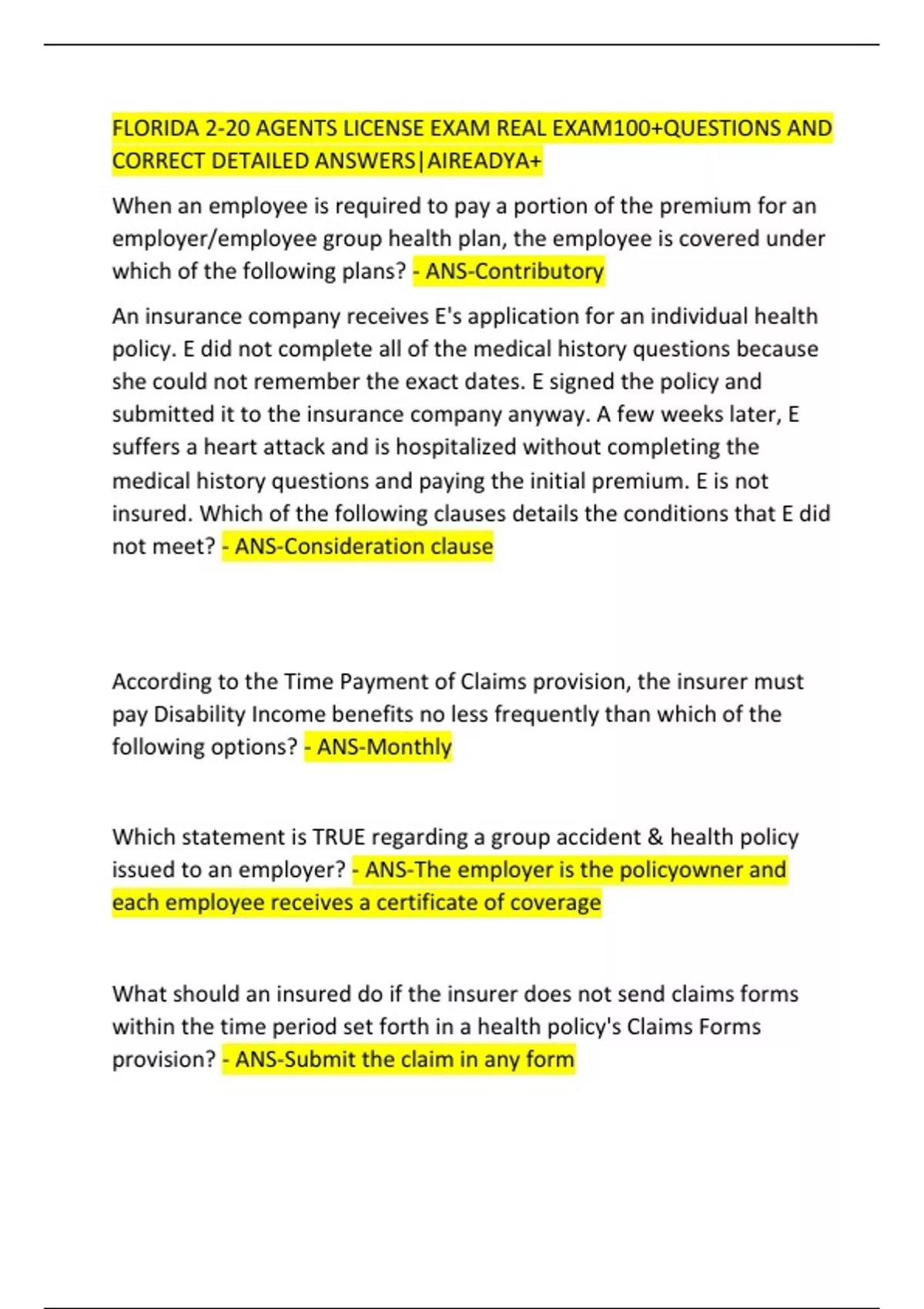 FLORIDA 2-20 AGENTS LICENSE EXAM REAL EXAM100+QUESTIONS AND CORRECT DETAILED ANSWERS|AIREADYA+
