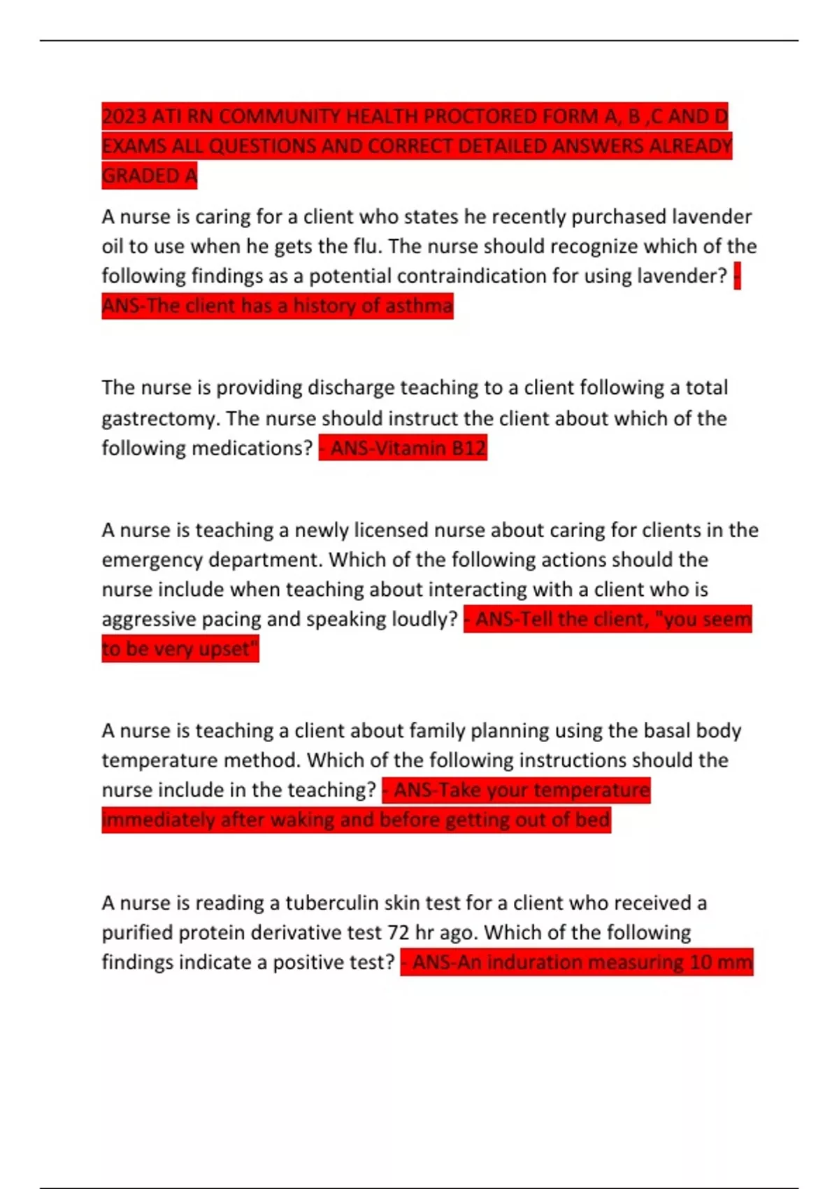 2023 ATI RN COMMUNITY HEALTH PROCTORED FORM A, B ,C AND D EXAMS ALL QUESTIONS AND CORRECT DETAILED ANSWERS ALREADY GRADED A