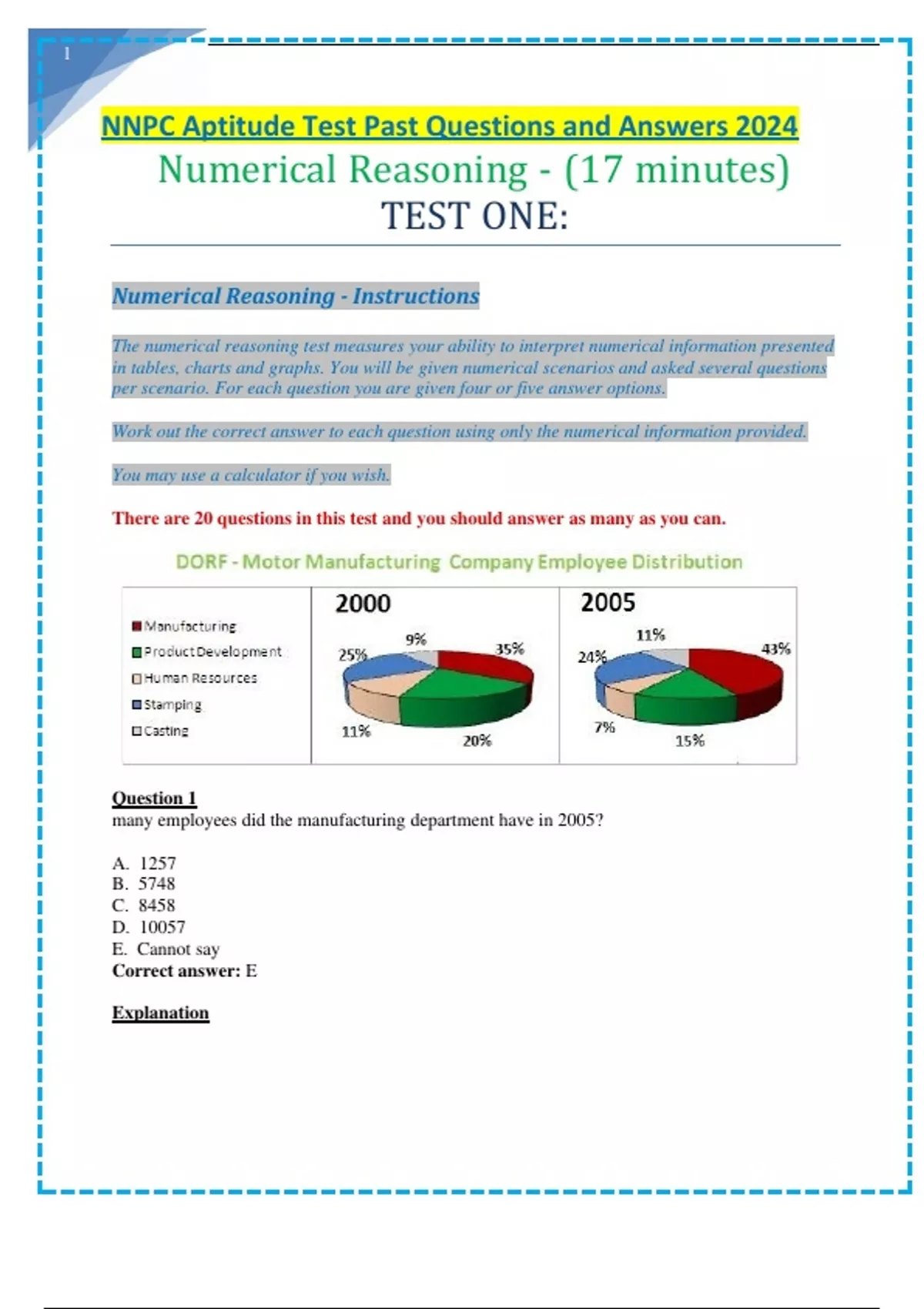 nnpc aptitude test past questions and answers 2024