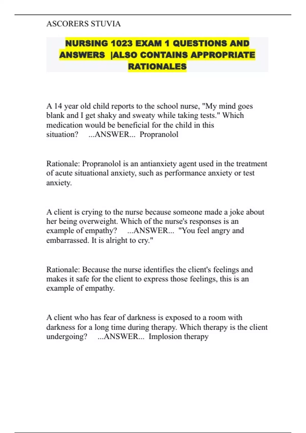 NURSING 1023 EXAM 1 QUESTIONS AND ANSWERS |ALSO CONTAINS APPROPRIATE RATIONALES
