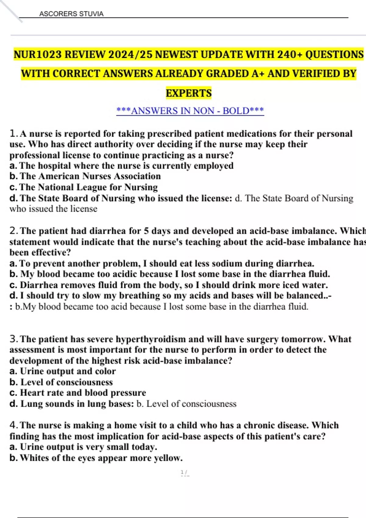 NUR1023 REVIEW 2024/25 NEWEST UPDATE WITH 240+ QUESTIONS WITH CORRECT ANSWERS ALREADY GRADED A+ AND VERIFIED BY EXPERTS