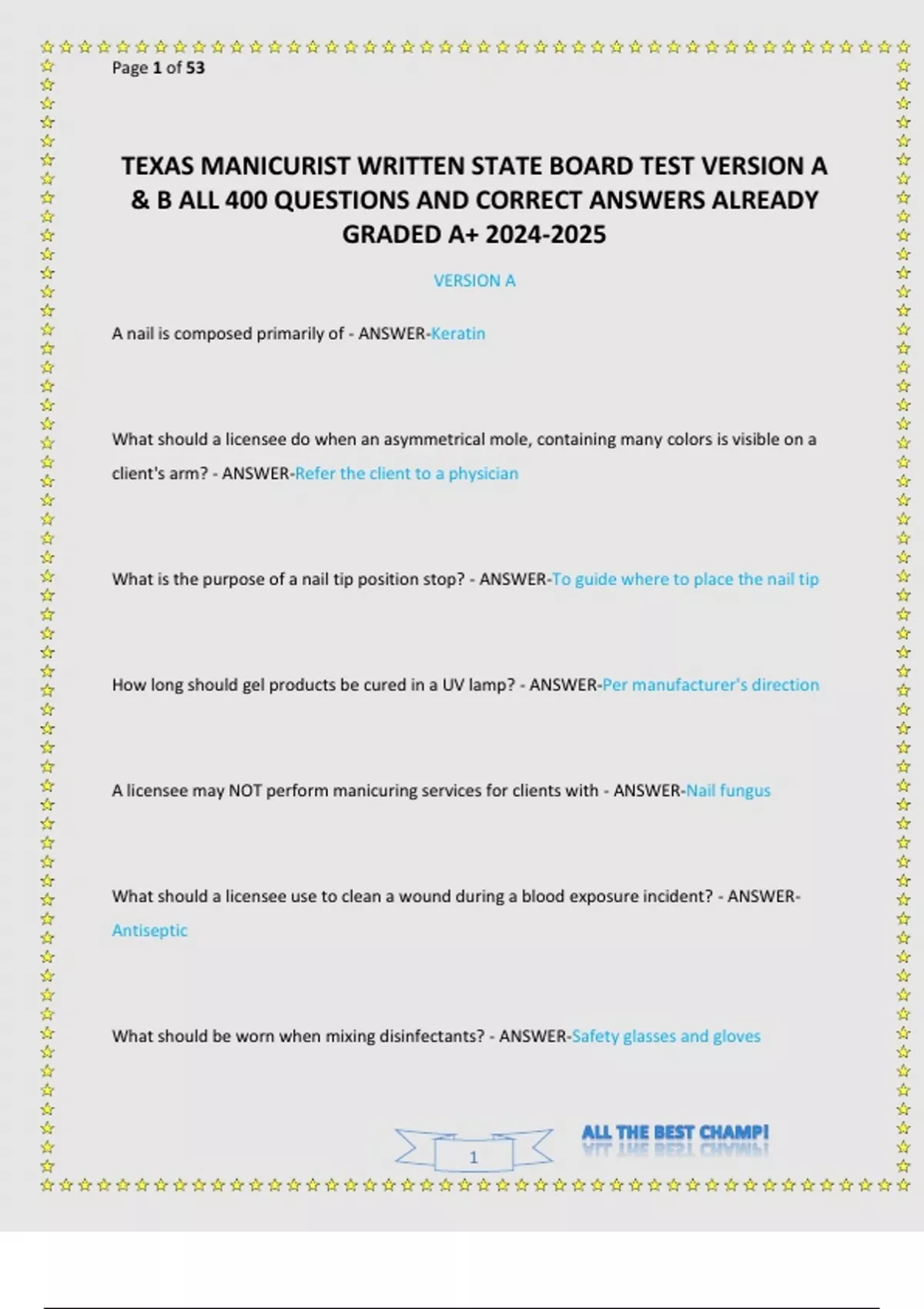 1 TEXAS MANICURIST WRITTEN STATE BOARD TEST VERSION A