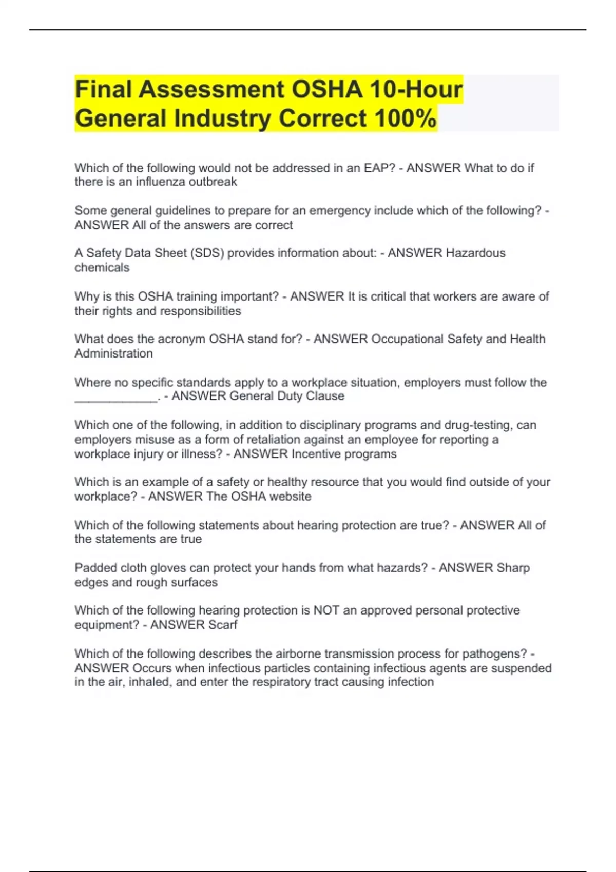 Final Assessment OSHA 10-Hour General Industry Correct 100%