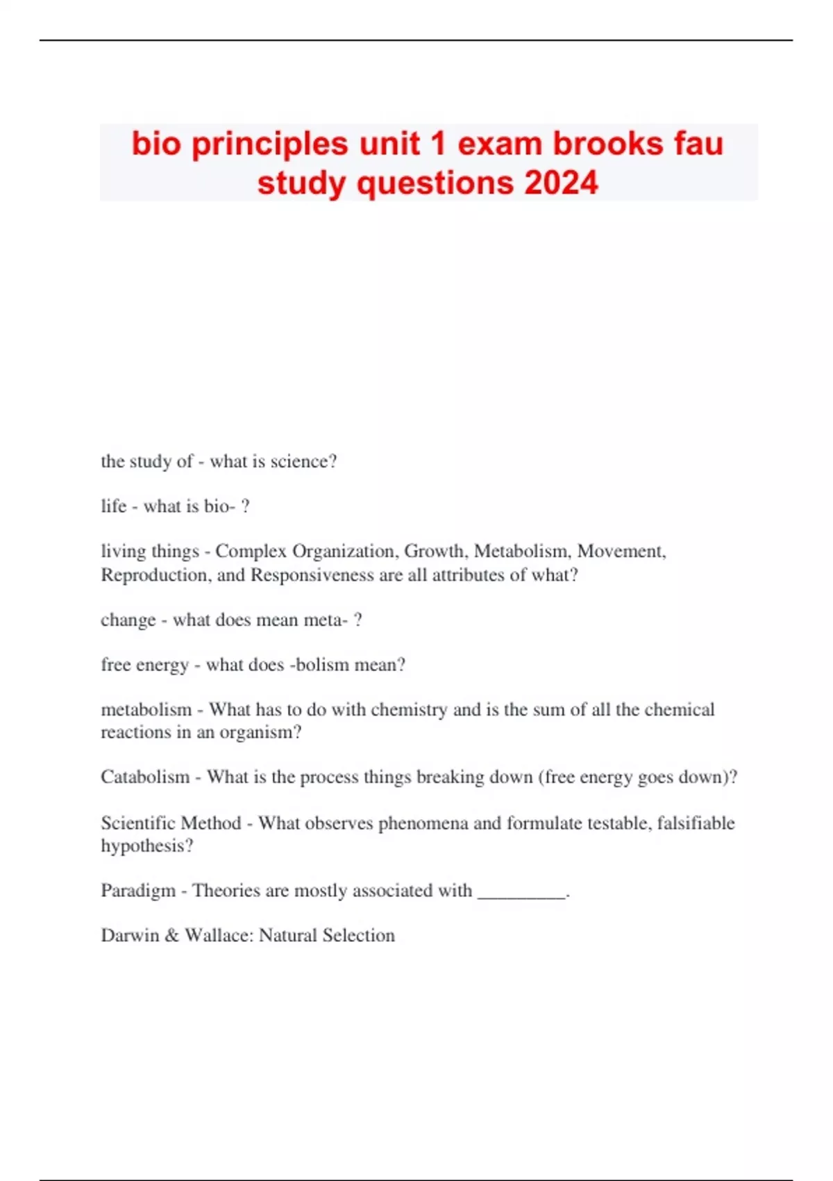 bio principles unit 1 exam brooks fau study questions 2024