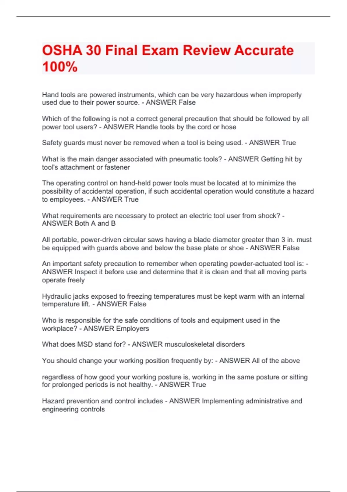 osha 30 final exam review accurate 100