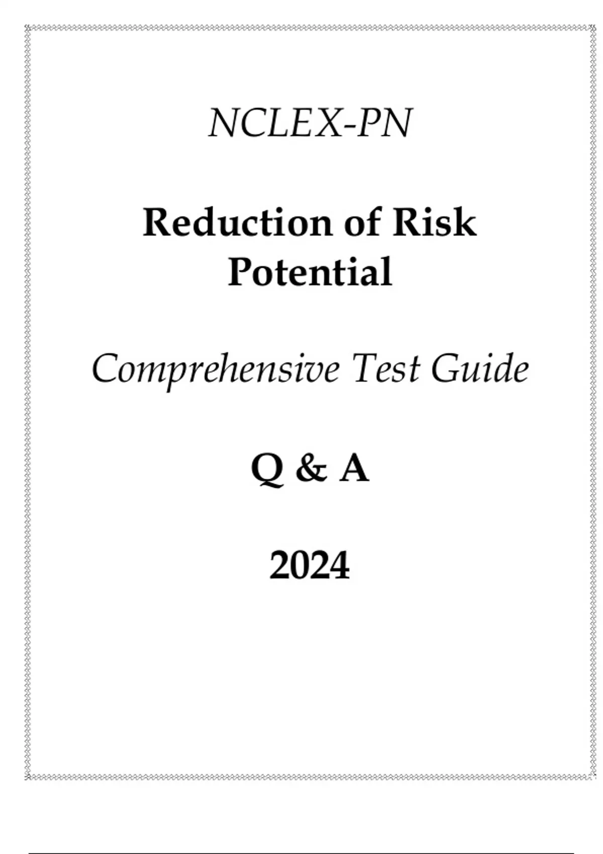 Next Gen NCLEX-PN Reduction of Risk Potential Comprehensive Test Guide Q & A 2024Next Gen NCLEX-PN Reduction of Risk Potential Comprehensive Test Guide Q & A 2024Next Gen NCLEX-PN Reduction of Risk Potential Comprehensive Test Guide Q & A 2024