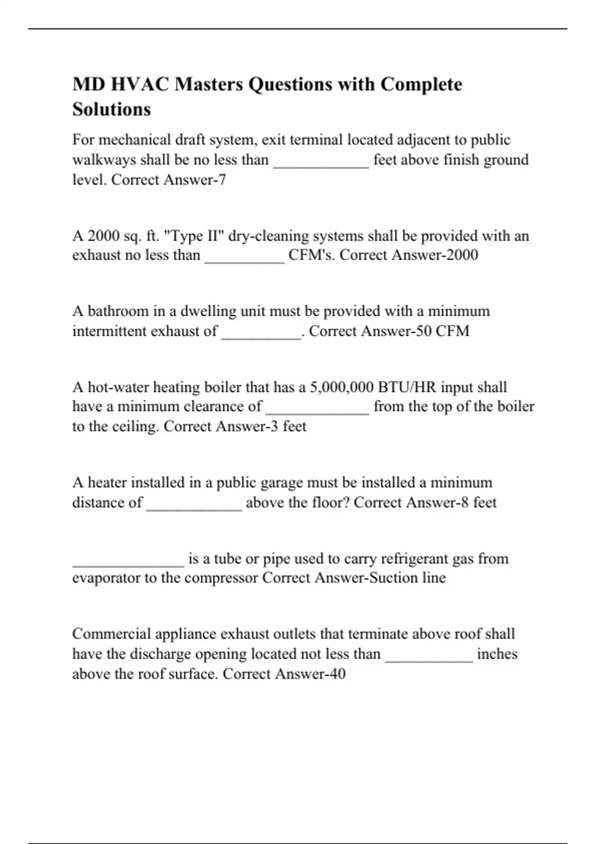 MD HVAC Masters Questions with Complete Solutions