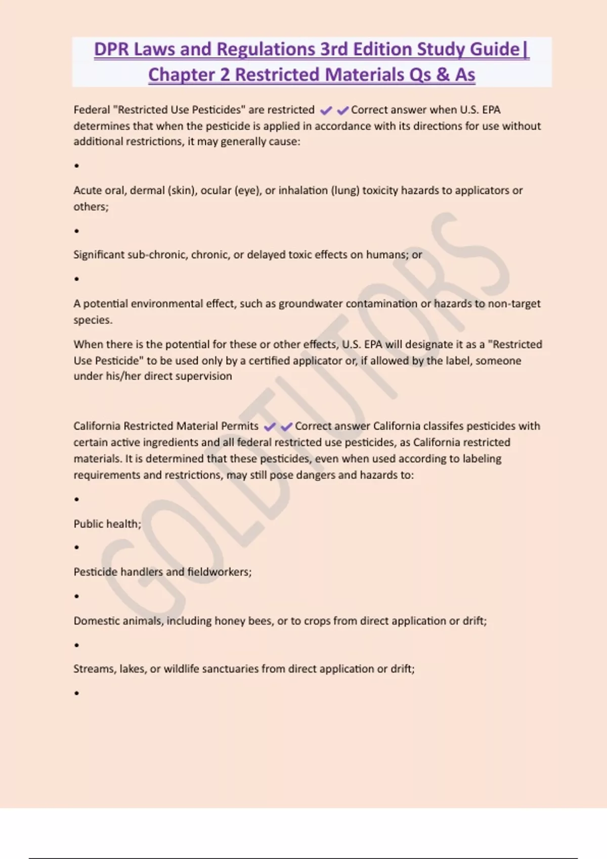 DPR Laws and Regulations 3rd Edition Study Guide| Chapter 2 Restricted Materials Qs & As