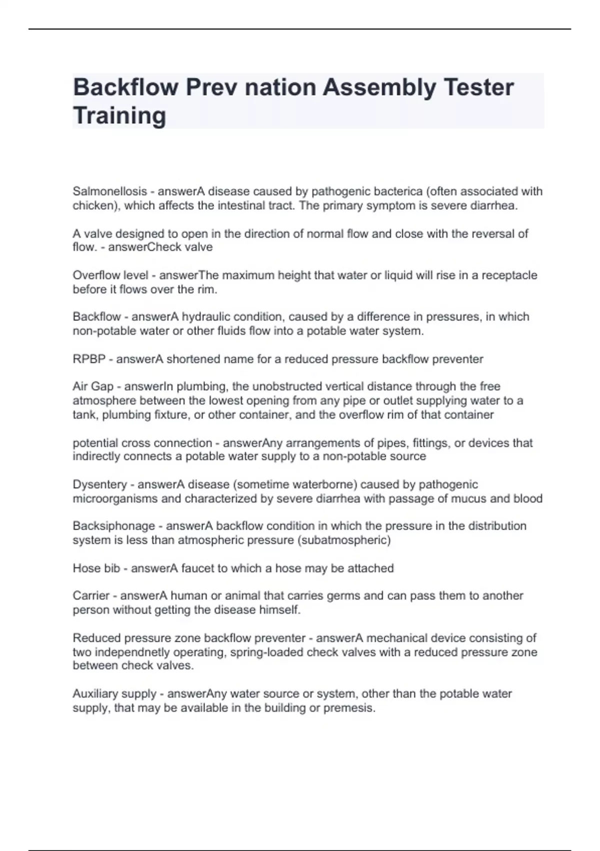 Backflow Exam Bundle Graded A+ |2024