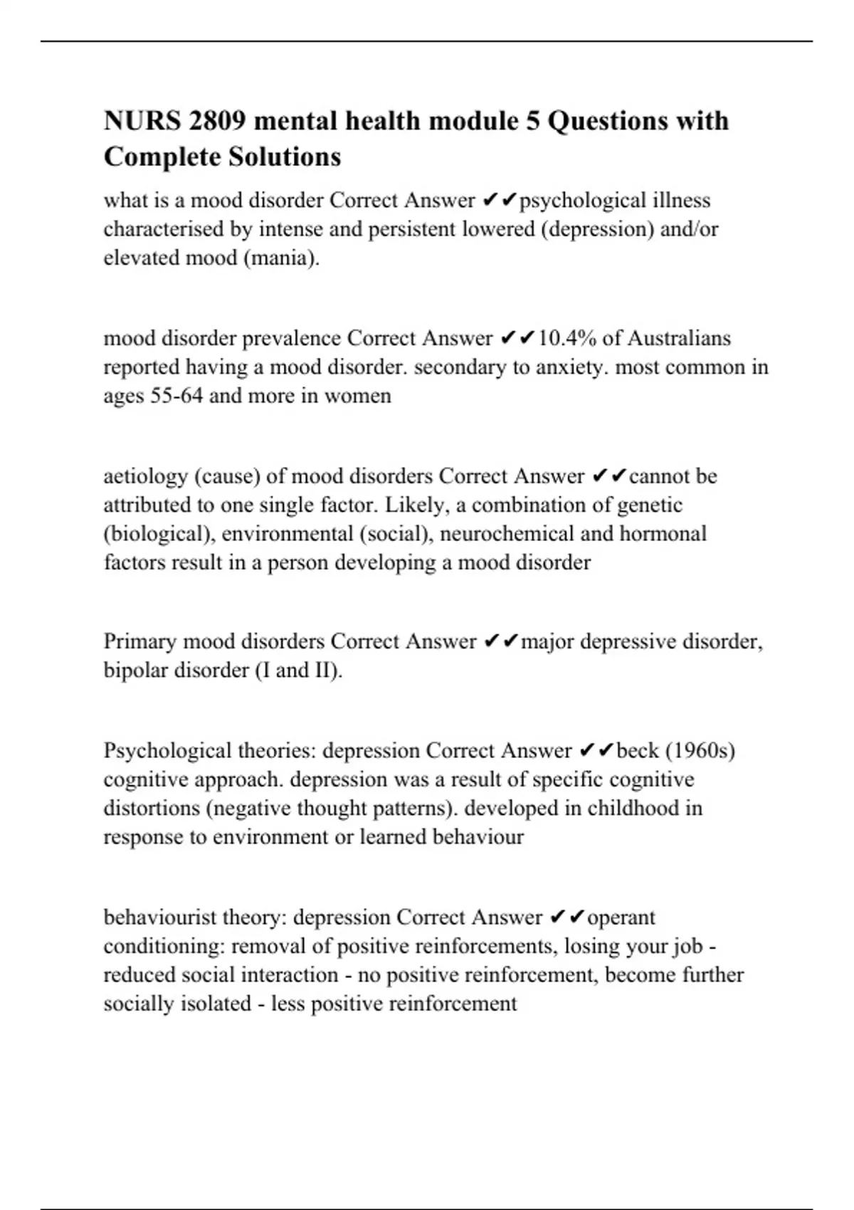 NURS 2809 mental health module 5 Questions with Complete Solutions