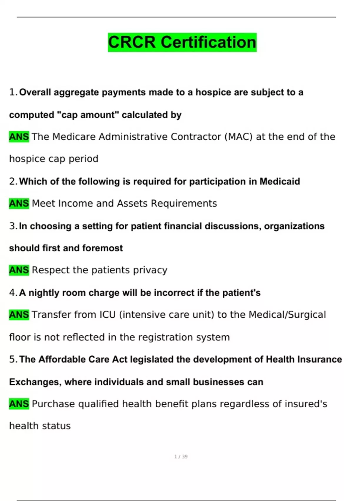 CRCR Certification Exam 2024 Questions and Answers 2024 / 2025 (Verified Answers by Expert)