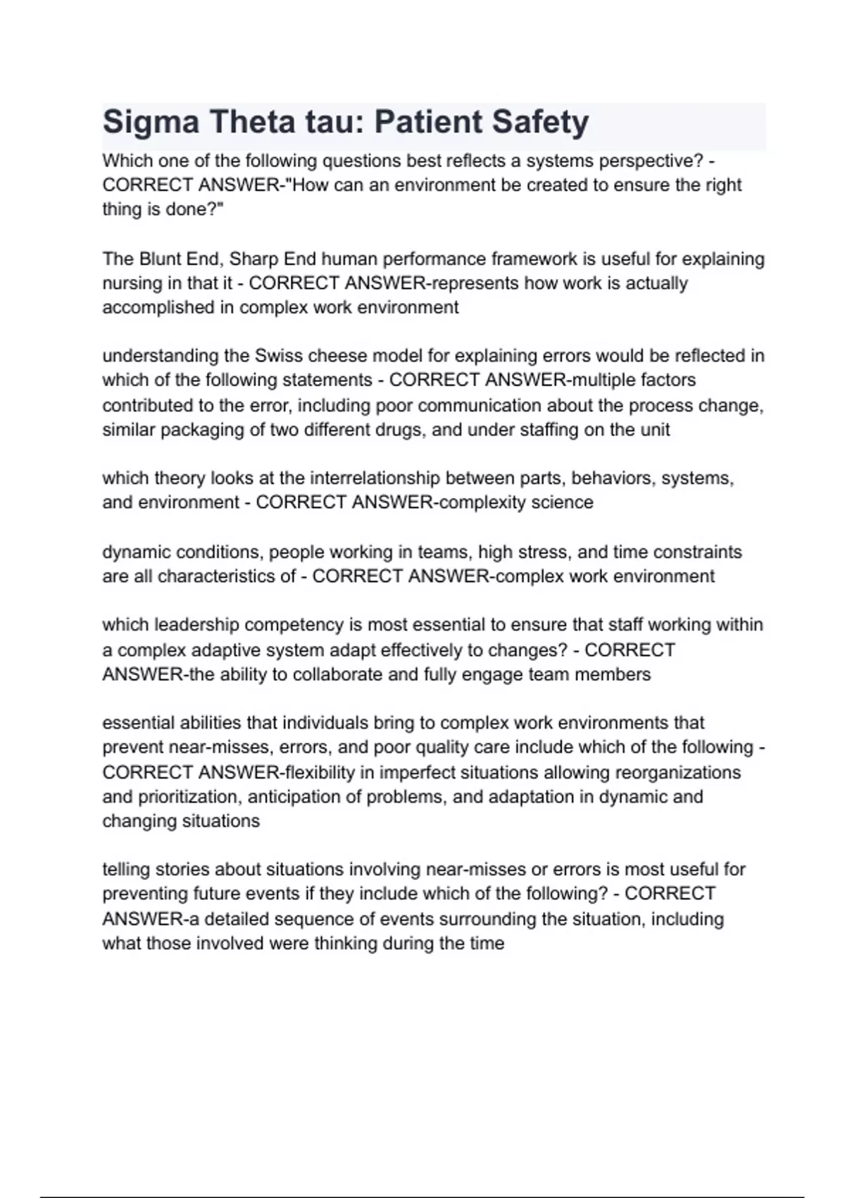 Sigma Theta tau Patient Safety all Questions & answers solved accurately with Complete Solution Graded A+ latest version