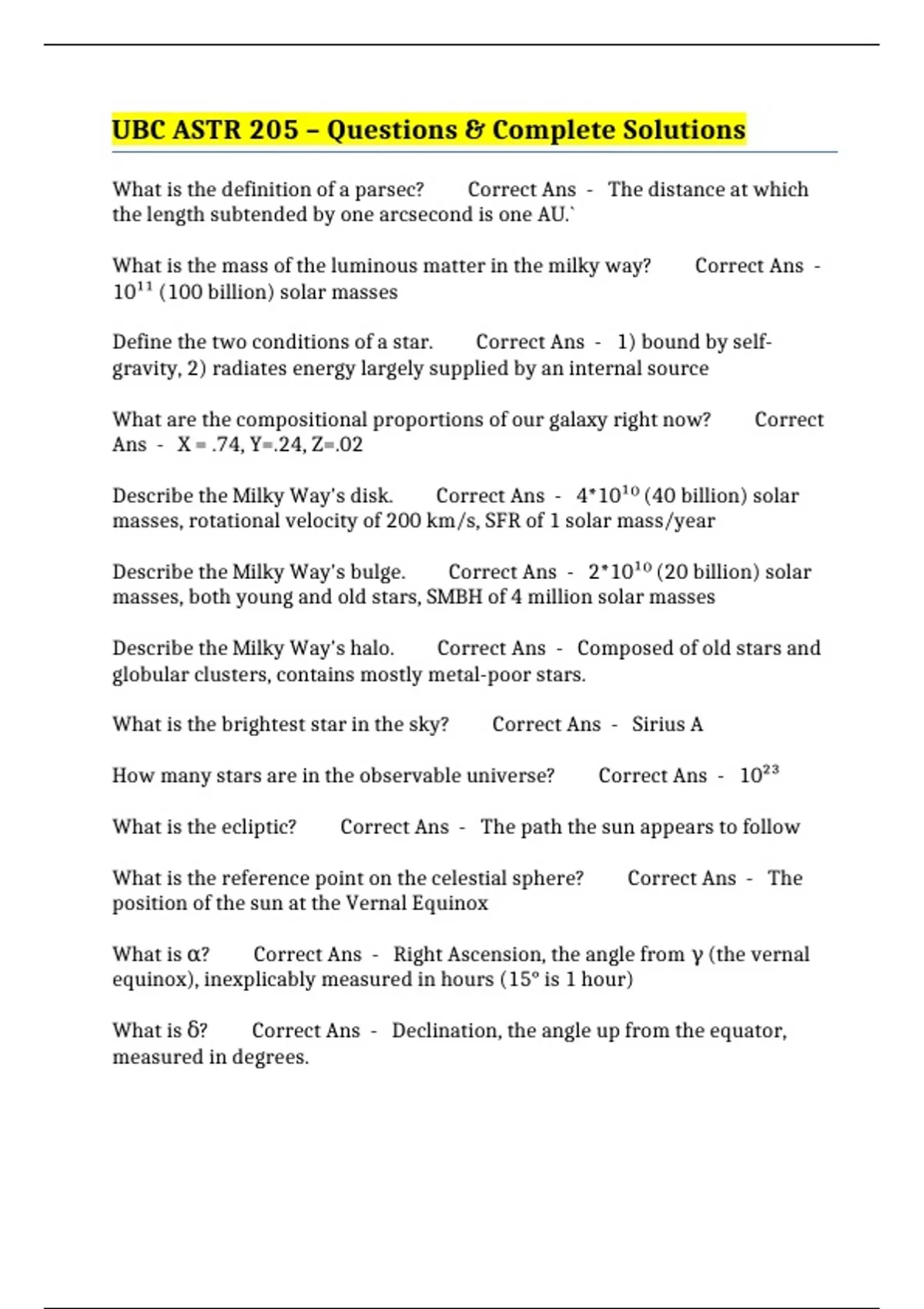 UBC ASTR 205 – Questions & Complete Solutions