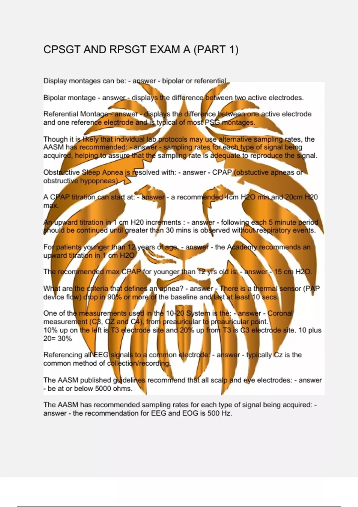 CPSGT AND RPSGT EXAM A (PART 1)