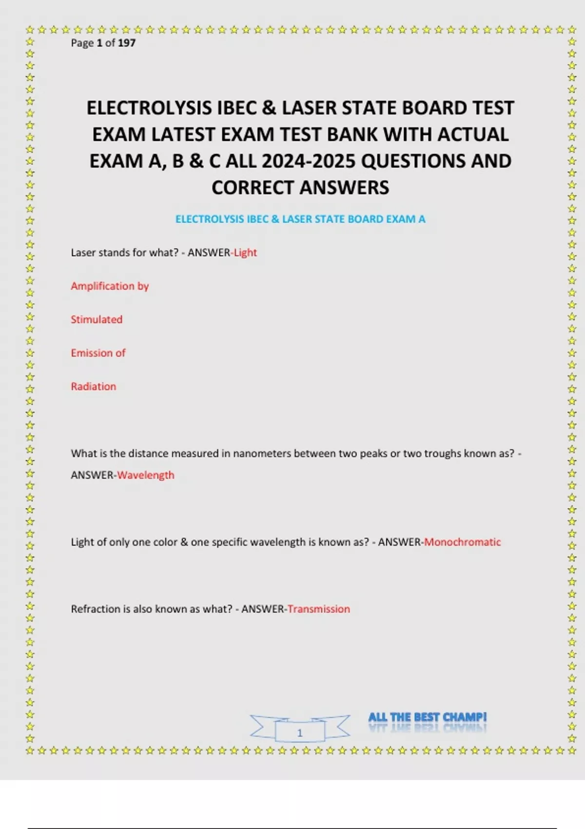 IBEC ELECTROLYSIS & LASER STATE TEST EXAM LATEST EXAM ACTUAL EXAM QUESTIONS AND ANSWERS VERSIONS A, B & C