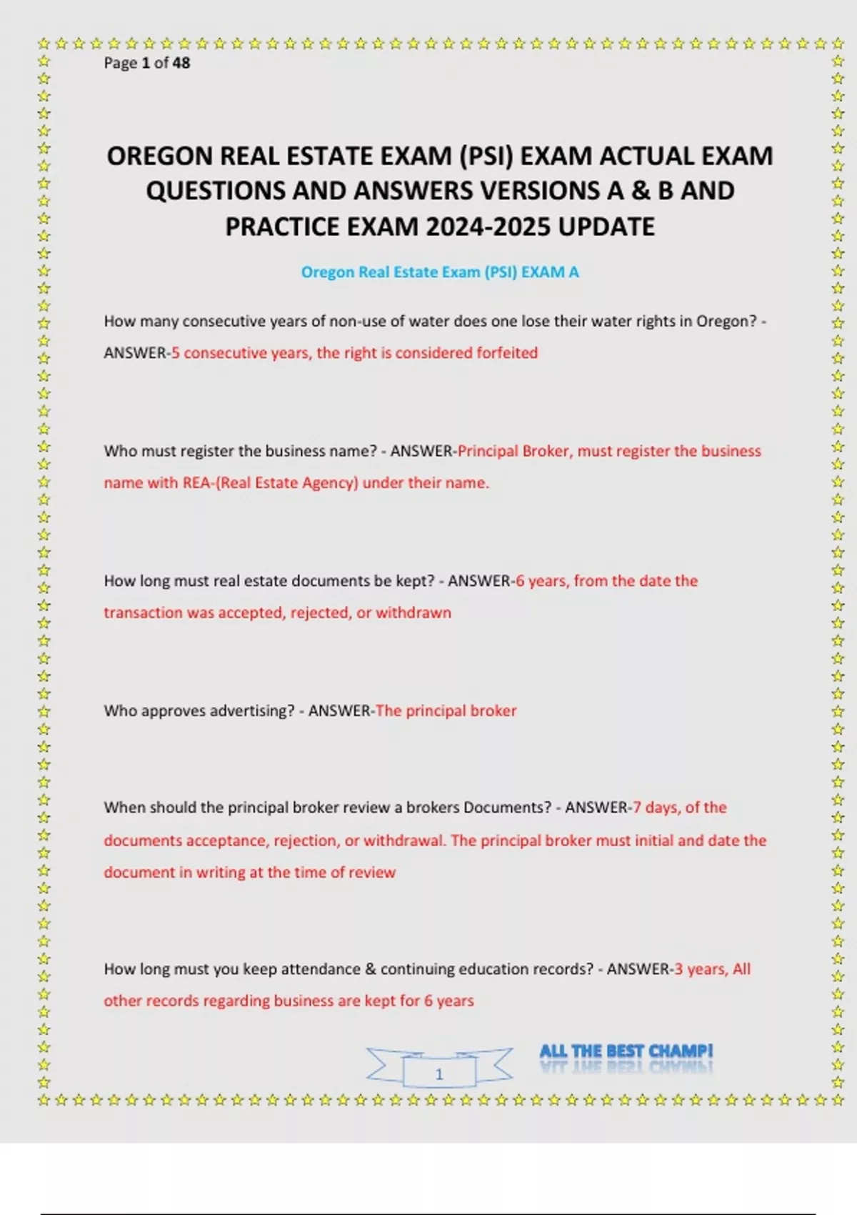 OREGON LAW OREGON STATE BOARD PRACTICE EXAM A AND B WITH STUDY GUIDE QUESTIONS AND ANSWERS UPDATE.