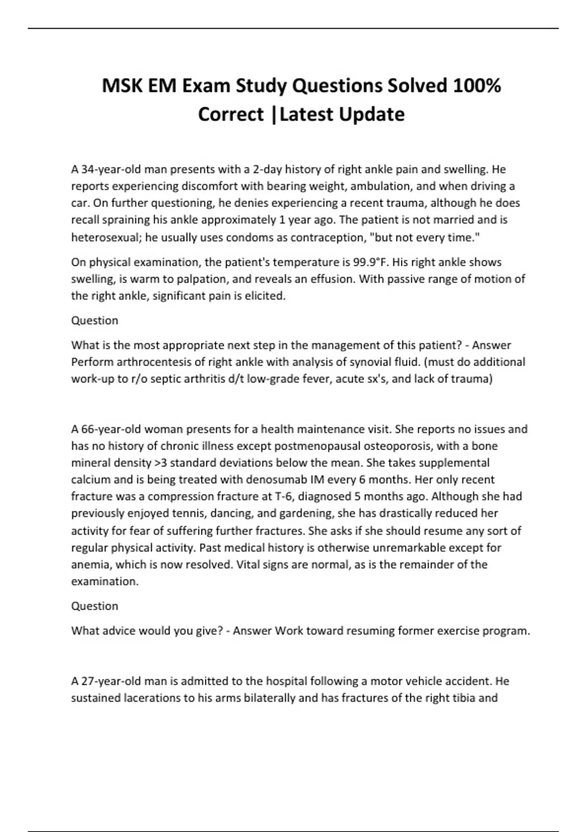 MSK EM Exam Study Questions Solved 100% Correct |Latest Update