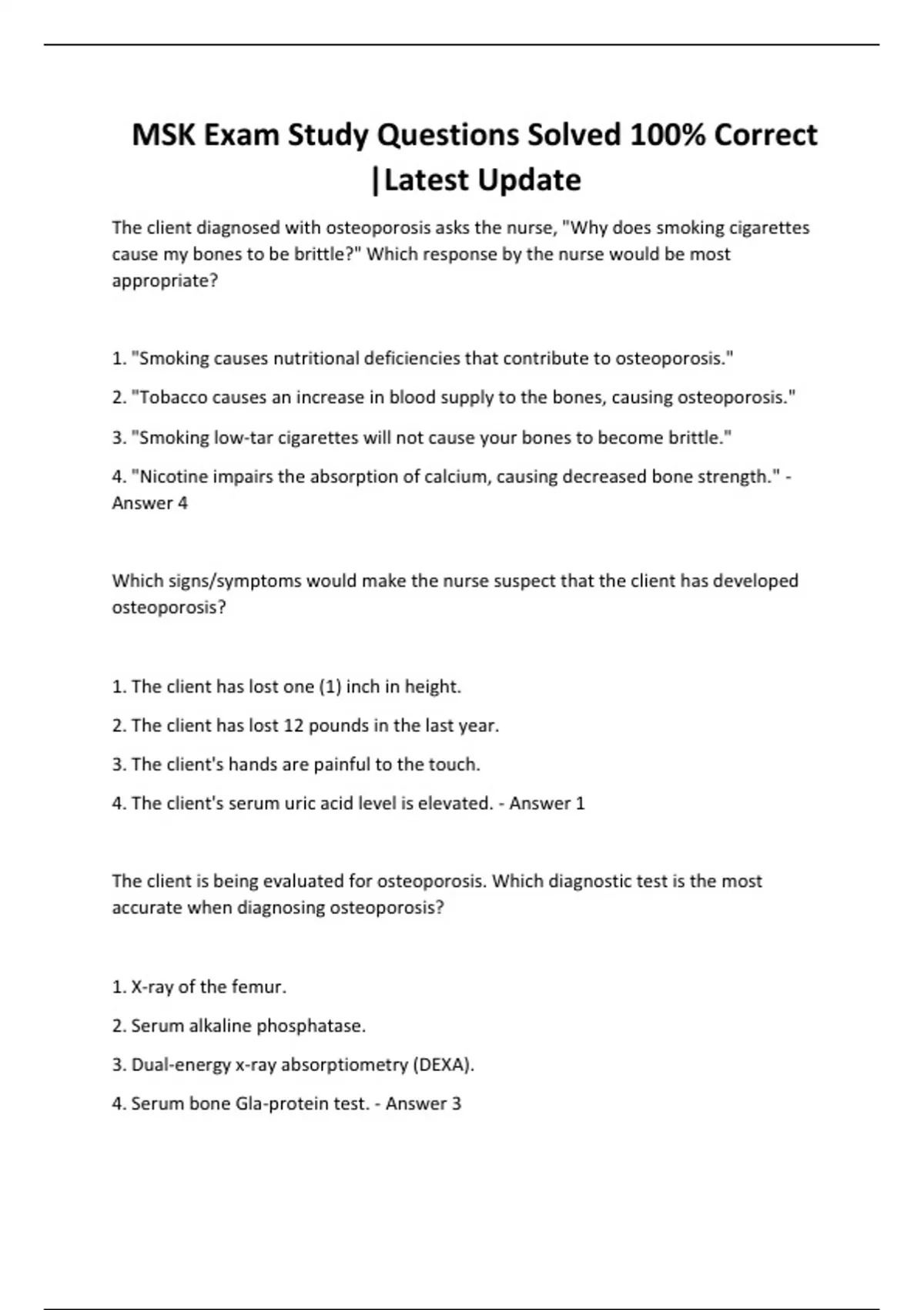 MSK Exam Study Questions Solved 100% Correct |Latest Update