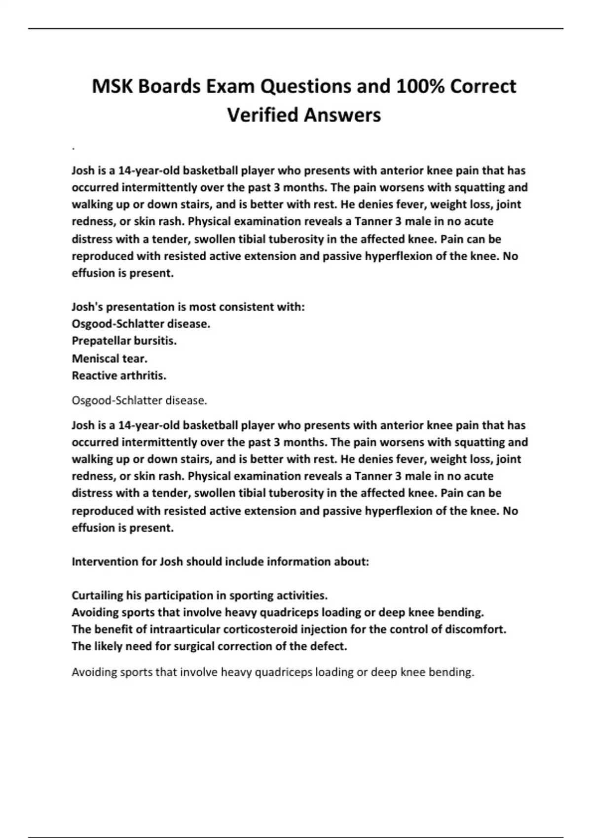 MSK Boards Exam Questions and 100% Correct Verified Answers