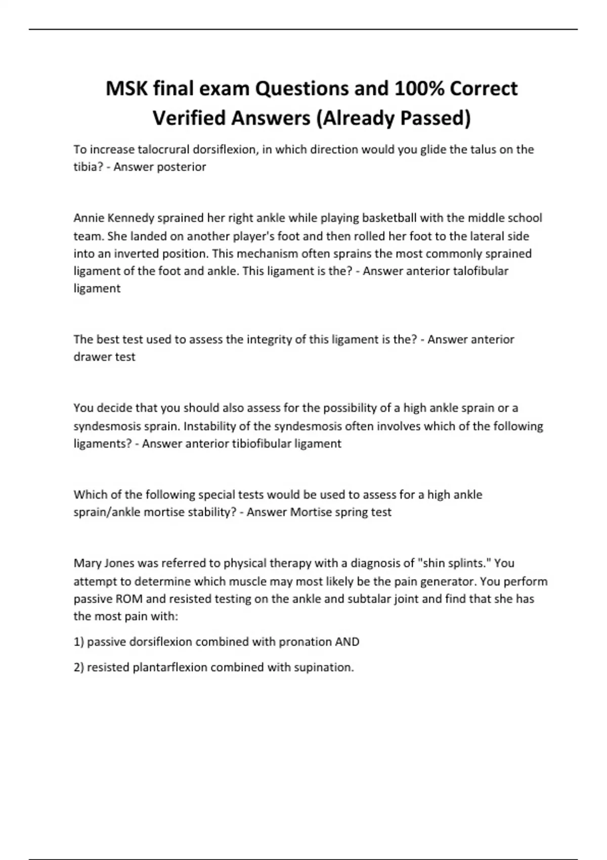 MSK final exam Questions and 100% Correct Verified Answers (Already Passed)