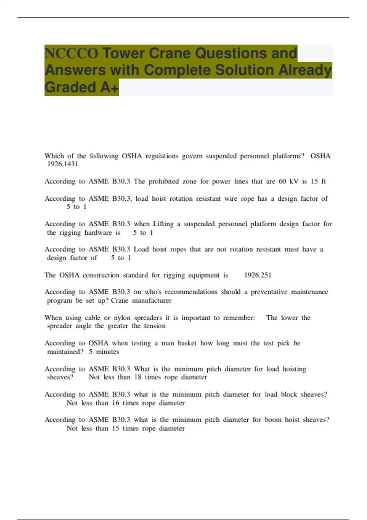 NCCCO Tower Crane Questions and Answers with Complete Solution Already Graded A+