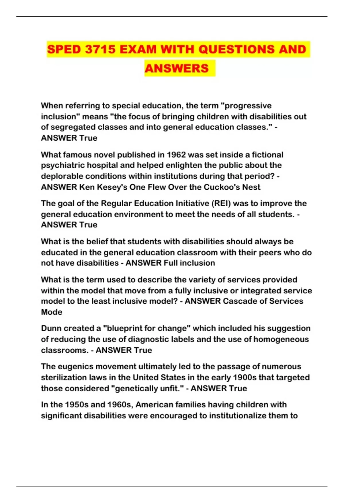 SPED 3715 EXAM WITH QUESTIONS AND ANSWERS ...