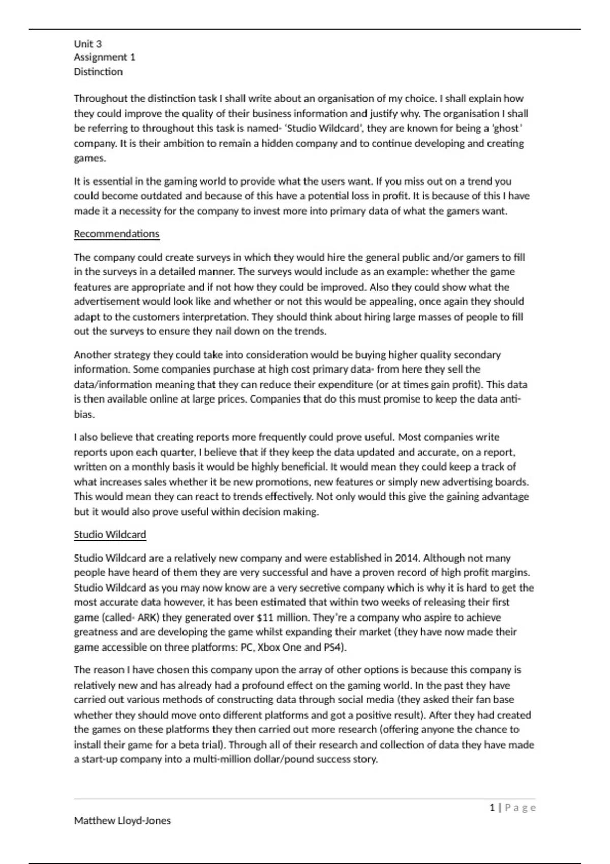 Throughout the distinction task I shall write about an organisation of my choice. I shall explain how