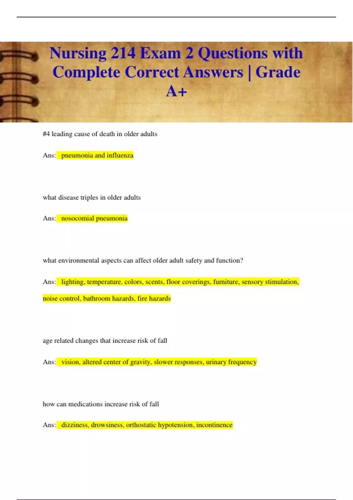 Nursing 214 Exam 2 Questions with Complete Correct Answers | Grade A+