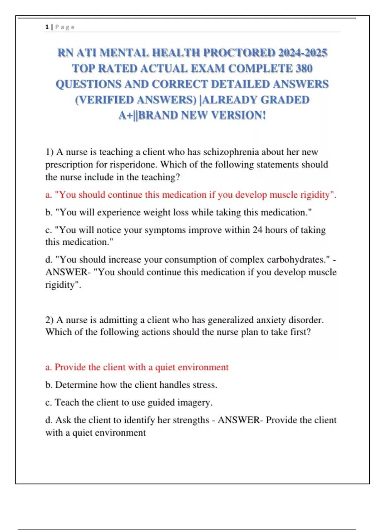 RN ATI MENTAL HEALTH PROCTORED TOP RATED ACTUAL EXAM COMPLETE 380 QUESTIONS AND CORRECT DETAILED ANSWERS (VERIFIED ANSWERS) |ALREADY GRADED A+||BRAND NEW VERSION!