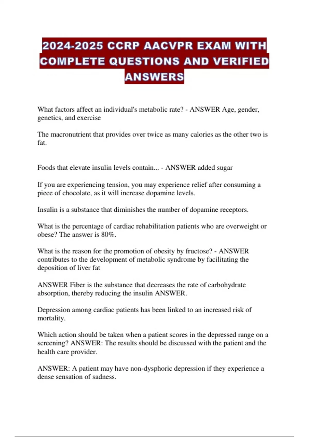 CCRP AACVPR EXAM WITH COMPLETE QUESTIONS AND VERIFIED ANSWERS...