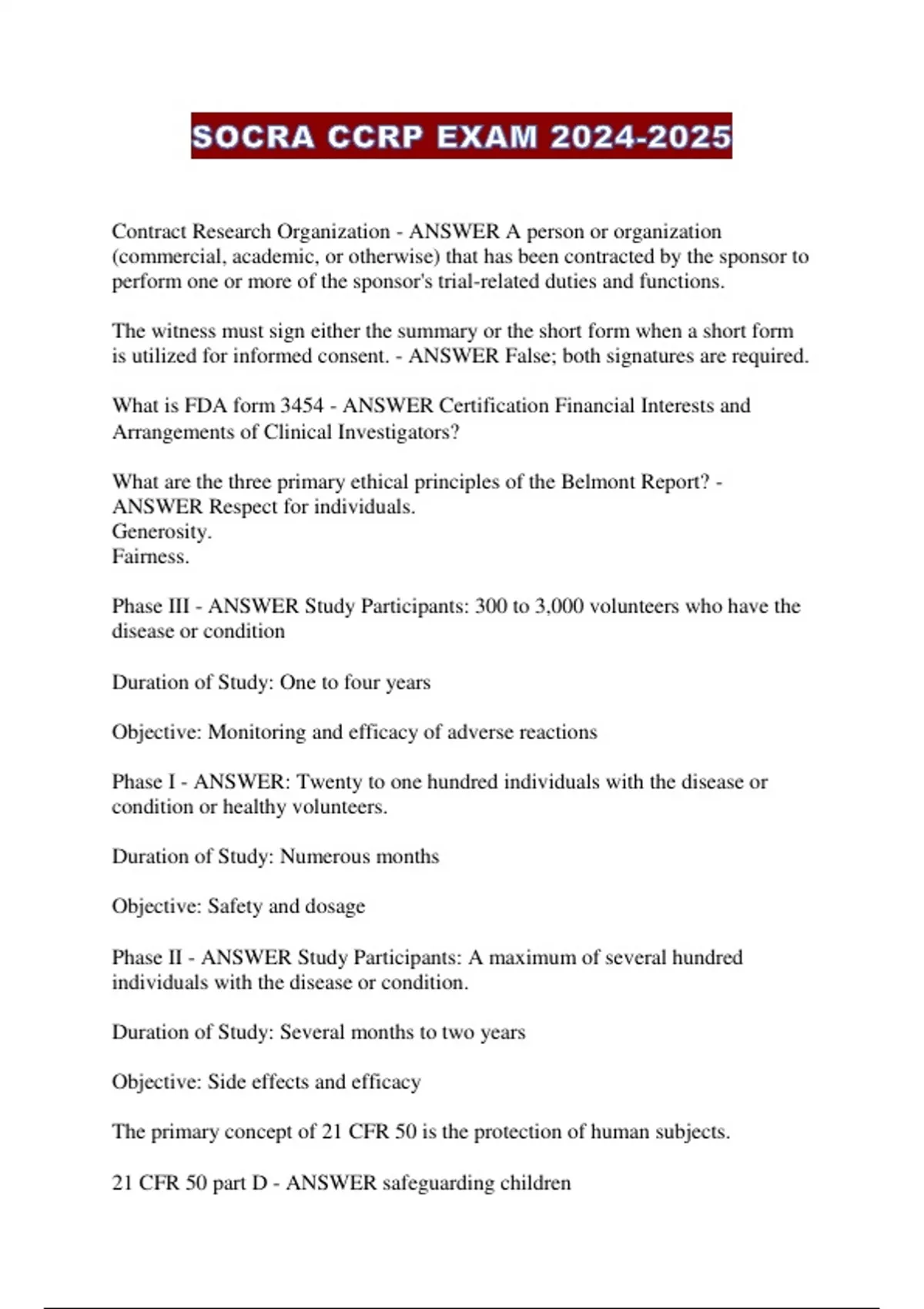 Exam of 5 pages for the course SOCRA CCRP at SOCRA CCRP (SOCRA CCRP EXAM ...)