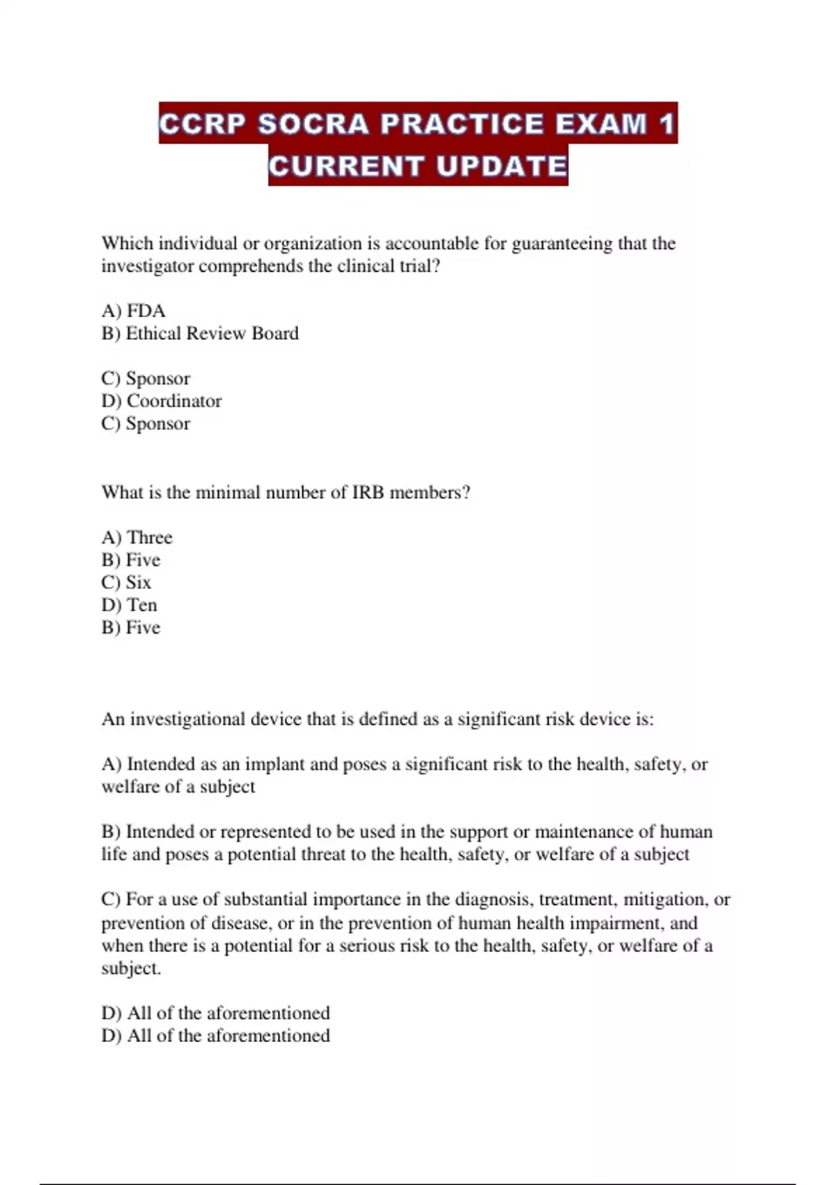CCRP SOCRA PRACTICE EXAM 1 CURRENT UPDATE...