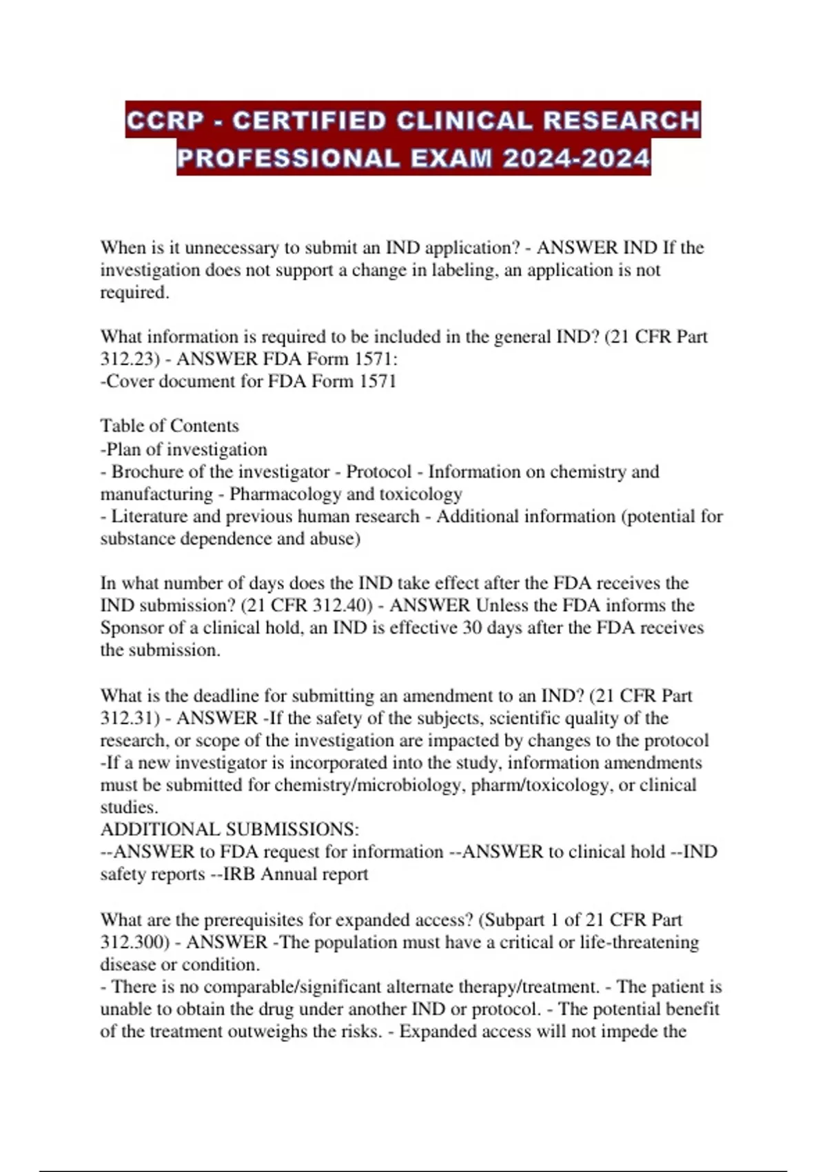 CCRP - CERTIFIED CLINICAL RESEARCH PROFESSIONAL EXAM