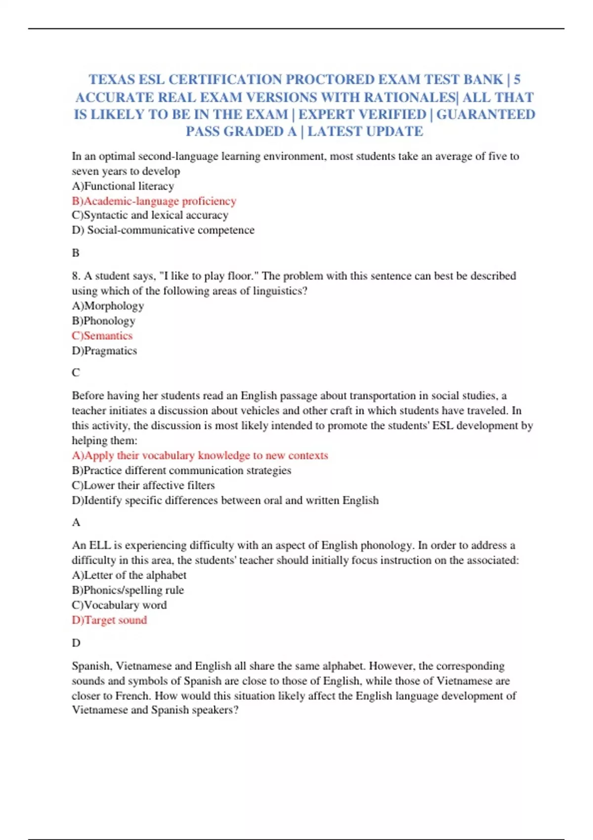 ,A)Vietnamese speakers will be more likely than Spanish speakers to experience problems with