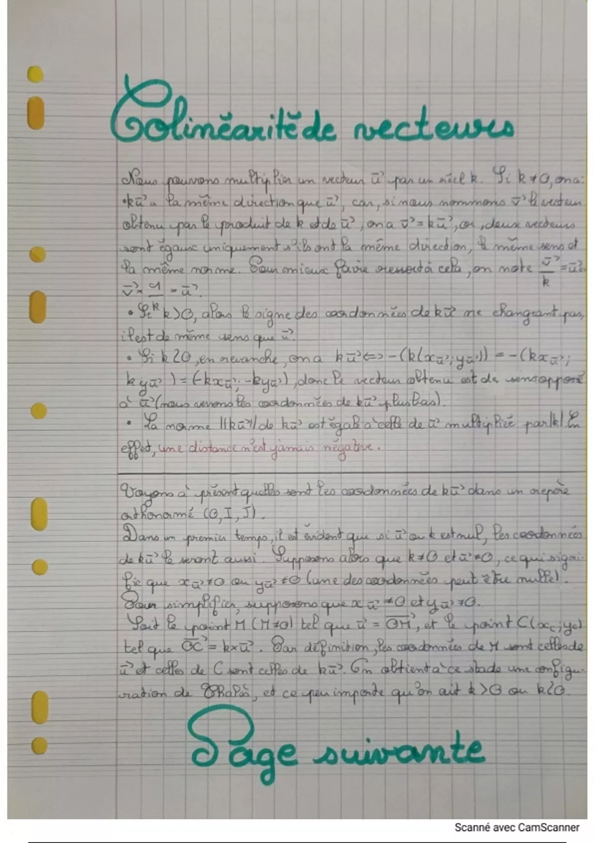 Fiche résumant l'intégralité du cours de seconde GT sur la colinéarité de vecteurs, avec de nombreuses démonstrations à l'appui.