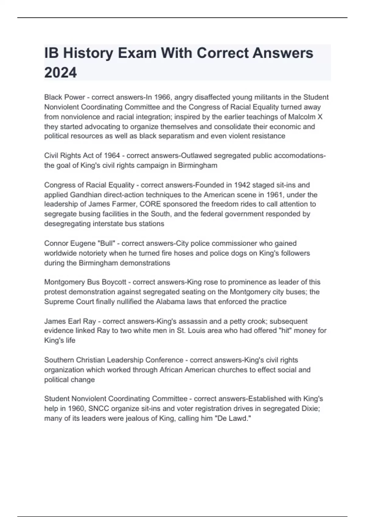 IB History Exam With Correct Answers 2024