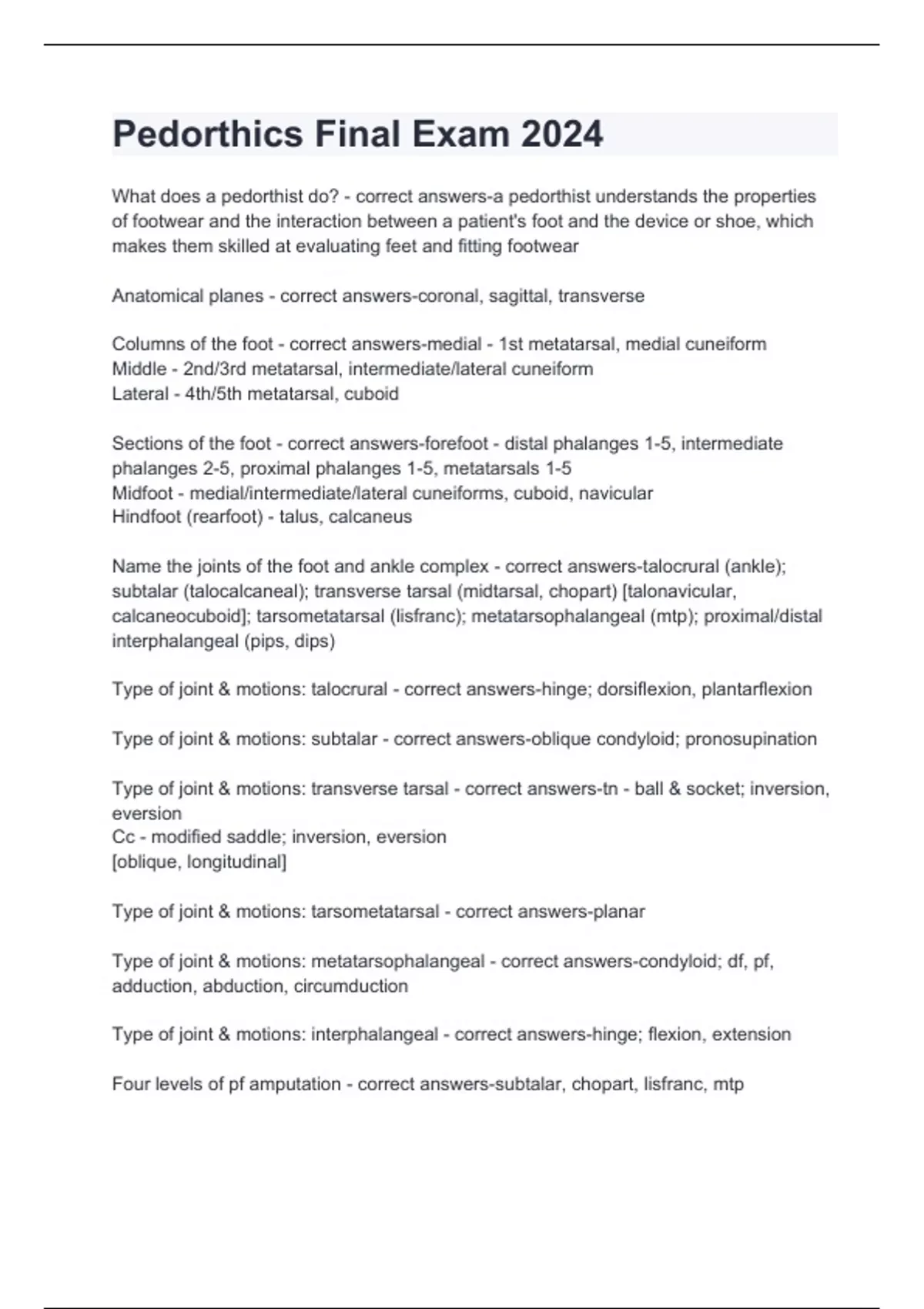 Pedorthics Final Exam 2024