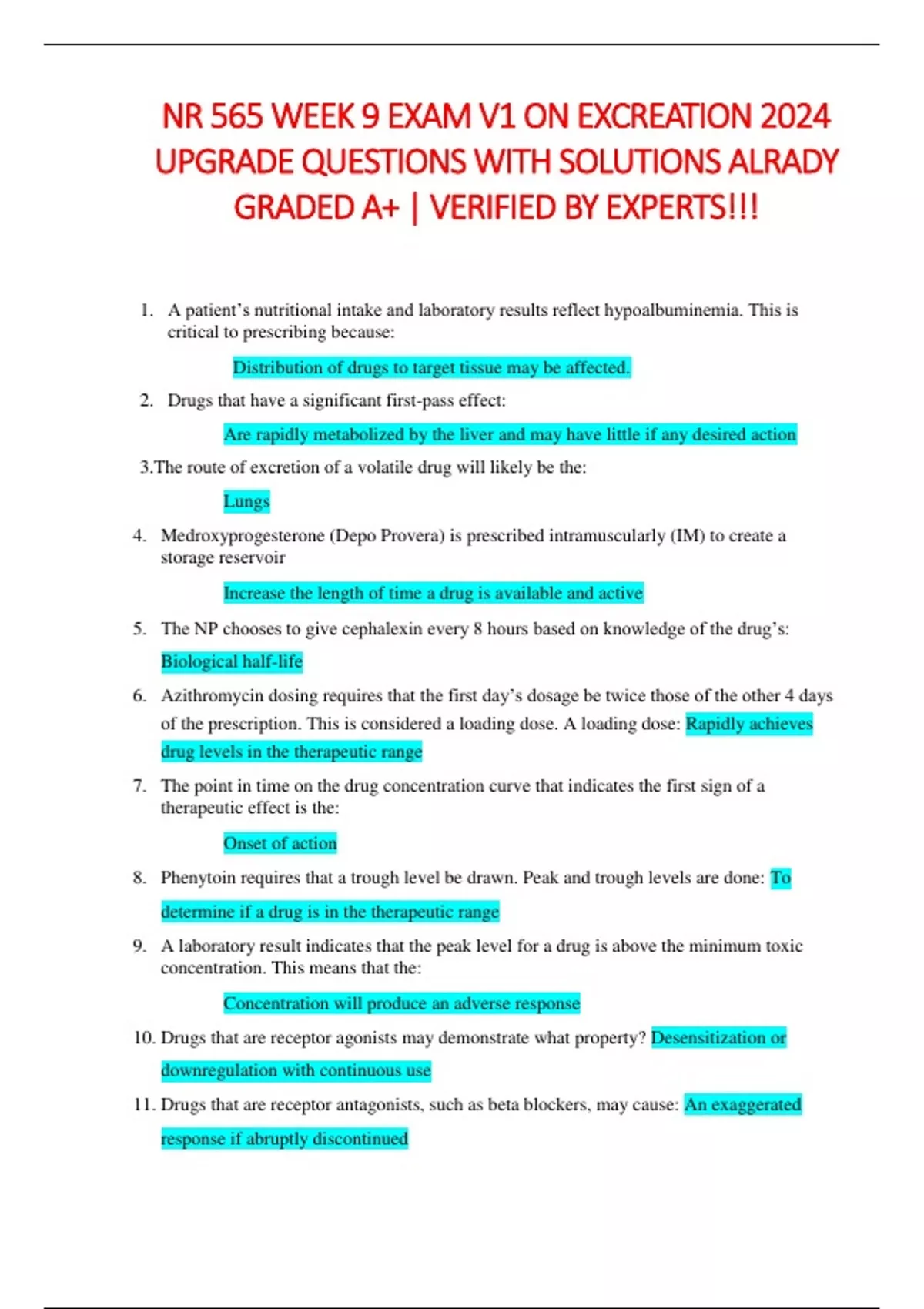 NR 565 WEEK 9 EXAM V1 ON EXCREATION 2024 UPGRADE QUESTIONS WITH SOLUTIONS ALRADY GRADED A+ | VERIFIED BY EXPERTS!!!