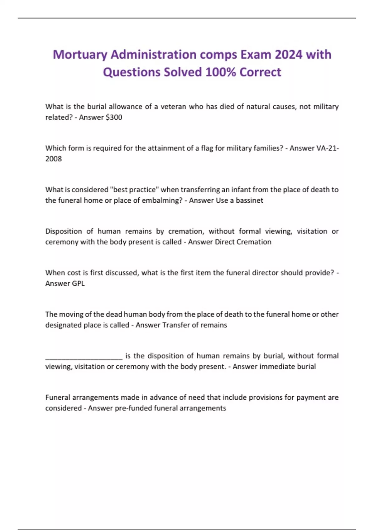 Mortuary Administration comps Exam 2024 with Questions Solved 100% Correct
