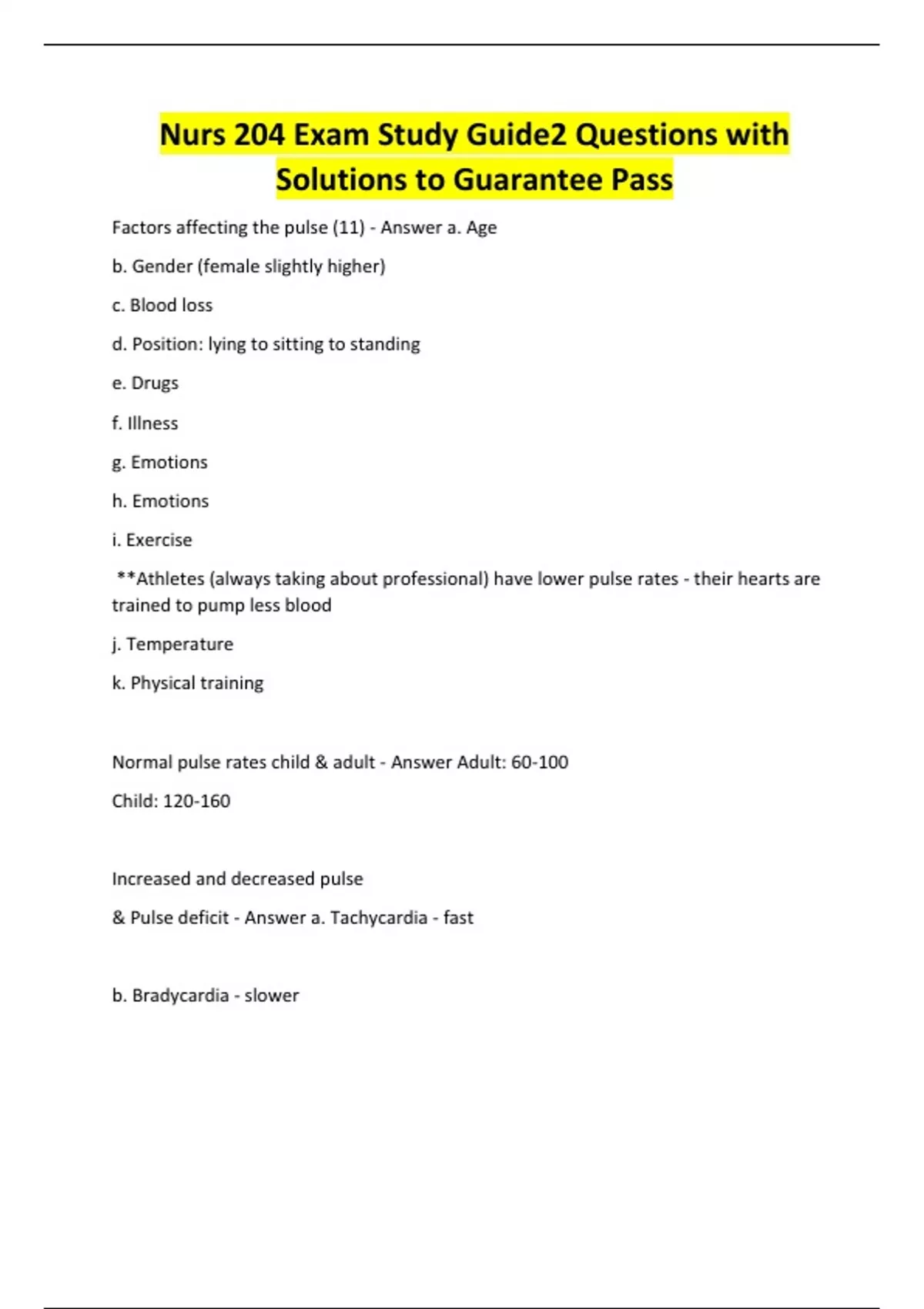 Nurs 204 Exam Study Guide2 Questions with Solutions to Guarantee Pass